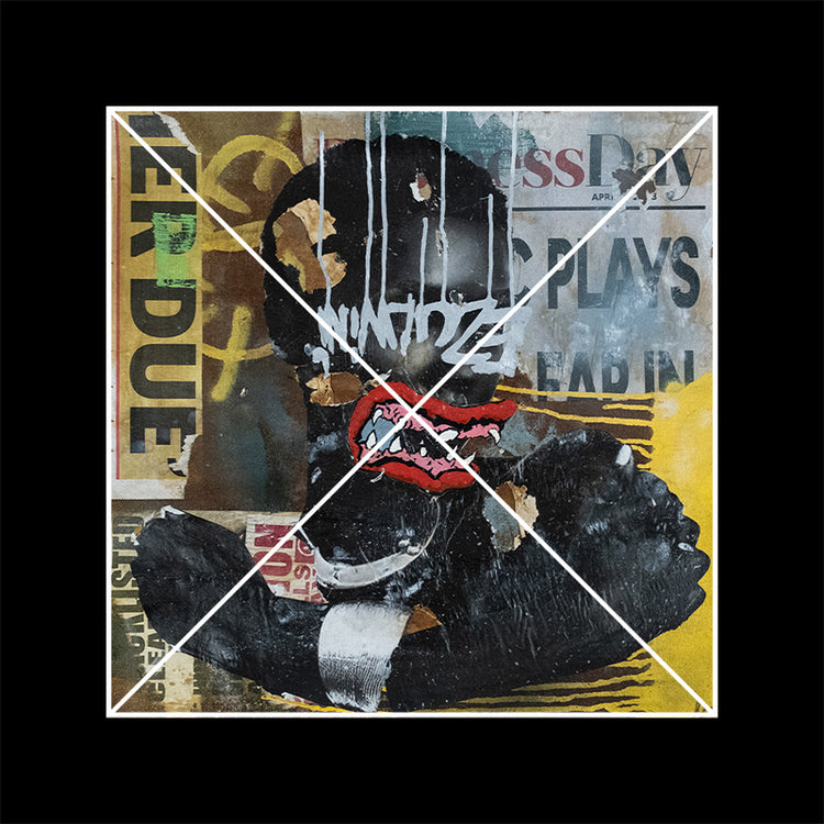 Mncedi Madolo draws from print ads and magazine covers to satirize his attempts at selling fast solutions to complex problems. Mncedi’s s layered works are of mixed-media underscores which depict the impact of advertisements on South African identity and it’s physical urban landscapes.
