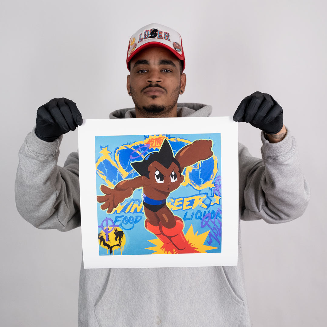 Astro Noir Sky Blue - Standard Edition by Torrence Jay. Archival Pigment Print on 290gsm Moab Entrada Fine Art Paper. 14 x 14 Inches. Run of 25. This RUN comes signed, numbered and with a Certificate of Authenticity from Torrence Jayy and 1XRUN.