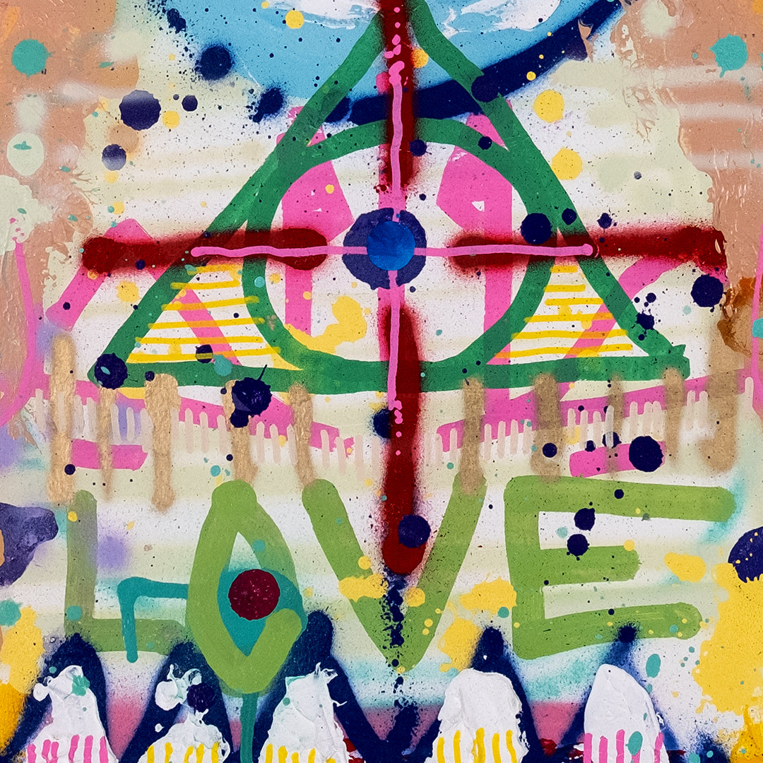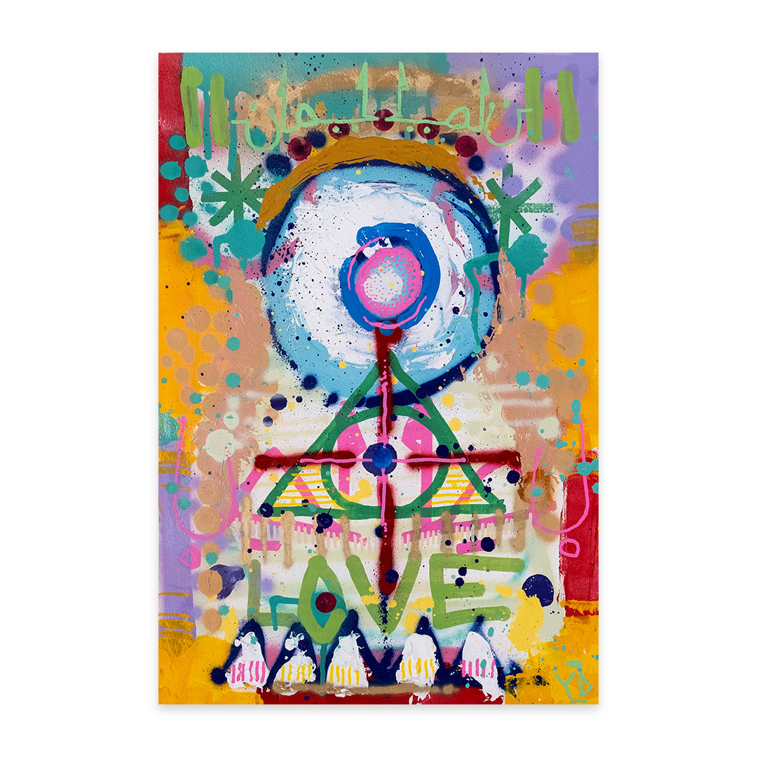 Believe In Love and It Will Set You Free! by Yonus Degel. Spraypaint & mixed media on paper. Edition of 1. 22 x 15 Inches. Comes with a Letter of Provenance