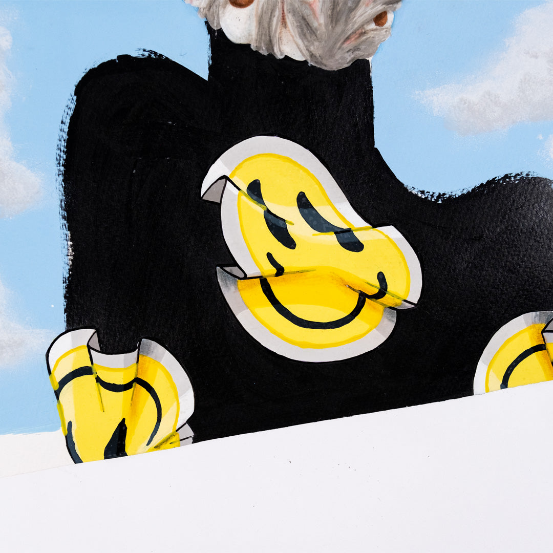 In the artwork ‘Blood in the streets’(2025), the inspiration comes from a quote by the 18th century banker, Baron Rothschild, “The time to buy is when there’s blood in the streets, even if that blood is your own.” The callousness of the quote and the cheerfulness of the painting create a memorable juxtaposition.