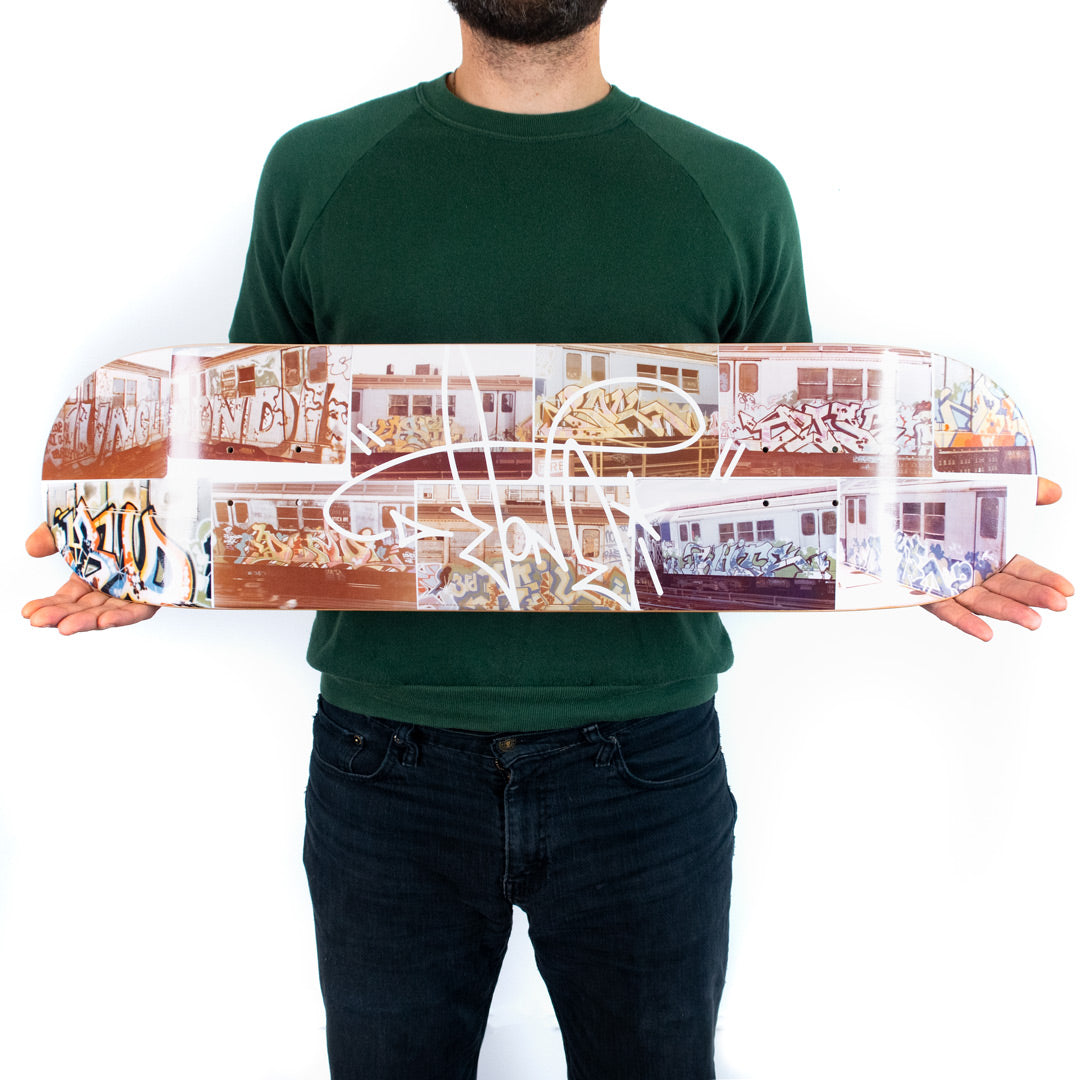 Dondi BMT by Dondi. Archival Pigment Print Transfer on Cold Pressed Steep Natural Skate Deck. Edition of 50. 8.25 x 31.875 Inches. This RUN comes with a screen-printed signature, is hand-numbered and includes a signed Certificate of Authenticity from the Dondi White Estate and 1xRUN.