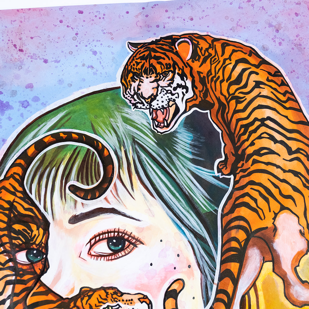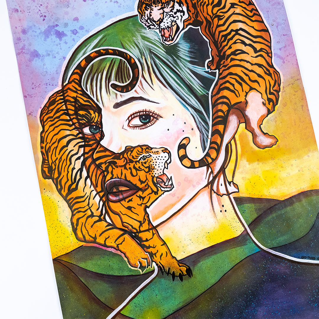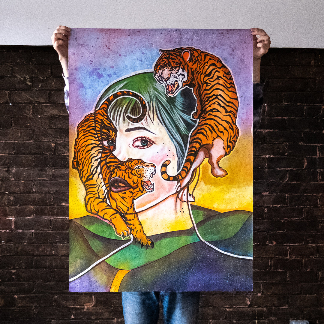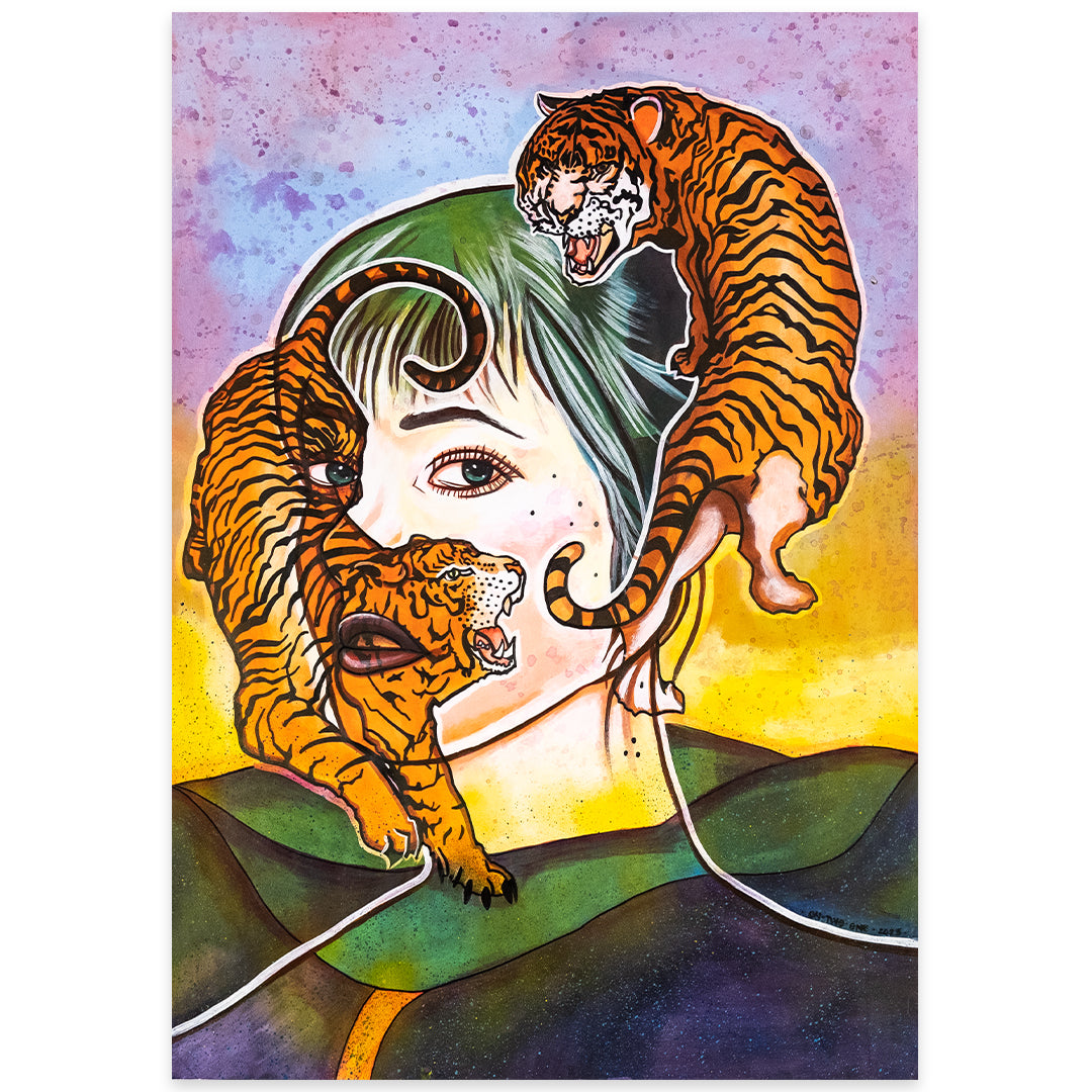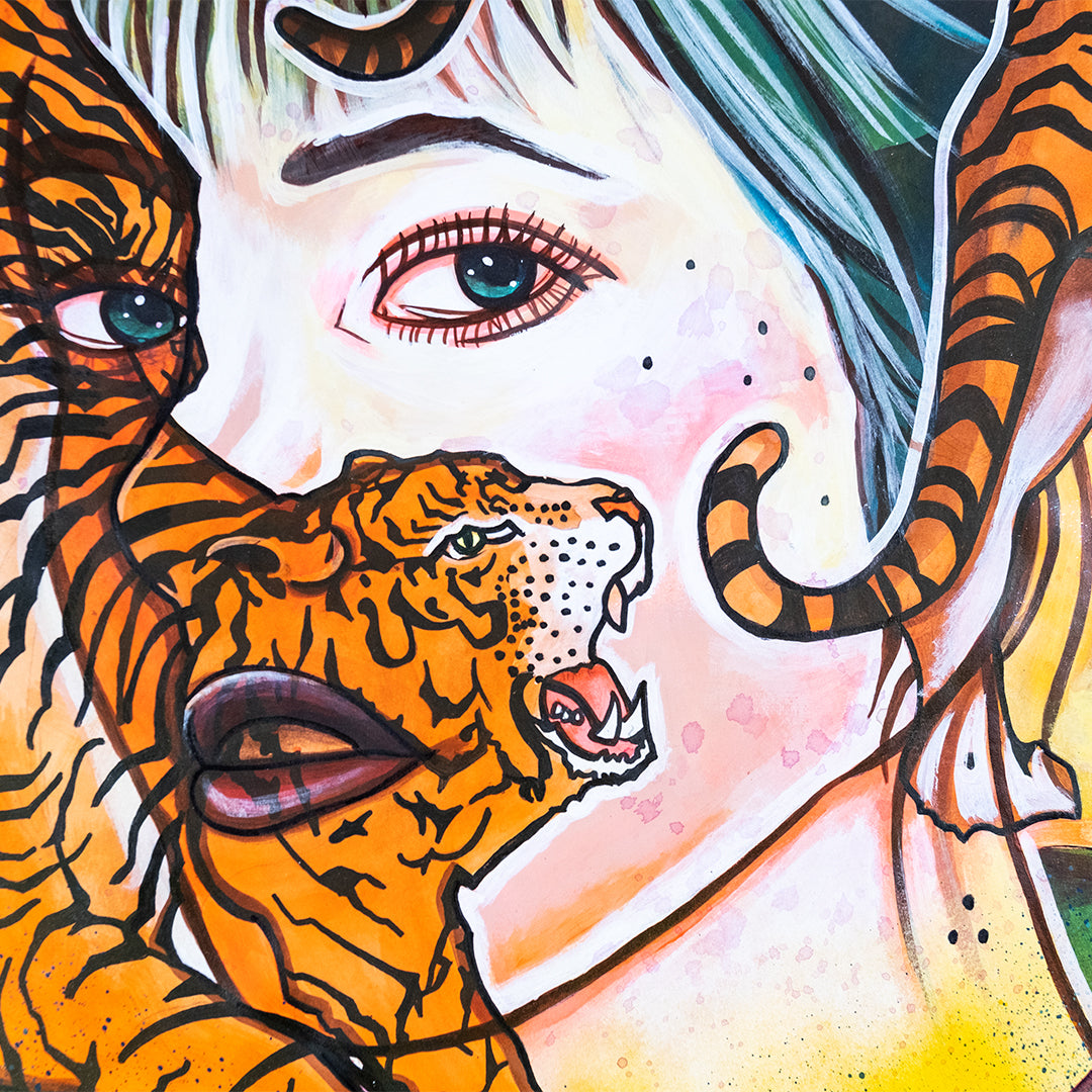 Oh Two One is a pseudonym of surrealist illustrator living and working in Cape Town, the artist works with surrealist undertones in her illustrative paintings, often portraying female subjects in a trans-like state. Sometimes political, she fuses socially driven ambiguous undertones to evoke further engagement with her audience with bright colors and dreamlike notions. .