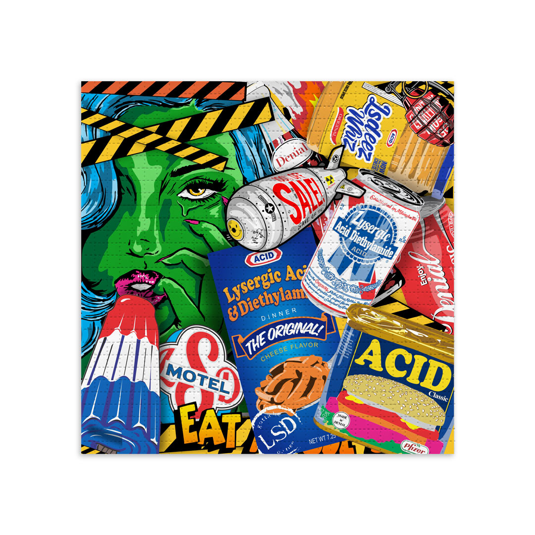 Eat Me by Denial. Archival Pigment Print on Perforated Blotter Paper. Edition of 25. 7.5 x 7.5 Inches. This RUN comes signed & numbered by the artist, and with a Certificate of Authenticity from 1XRUN.