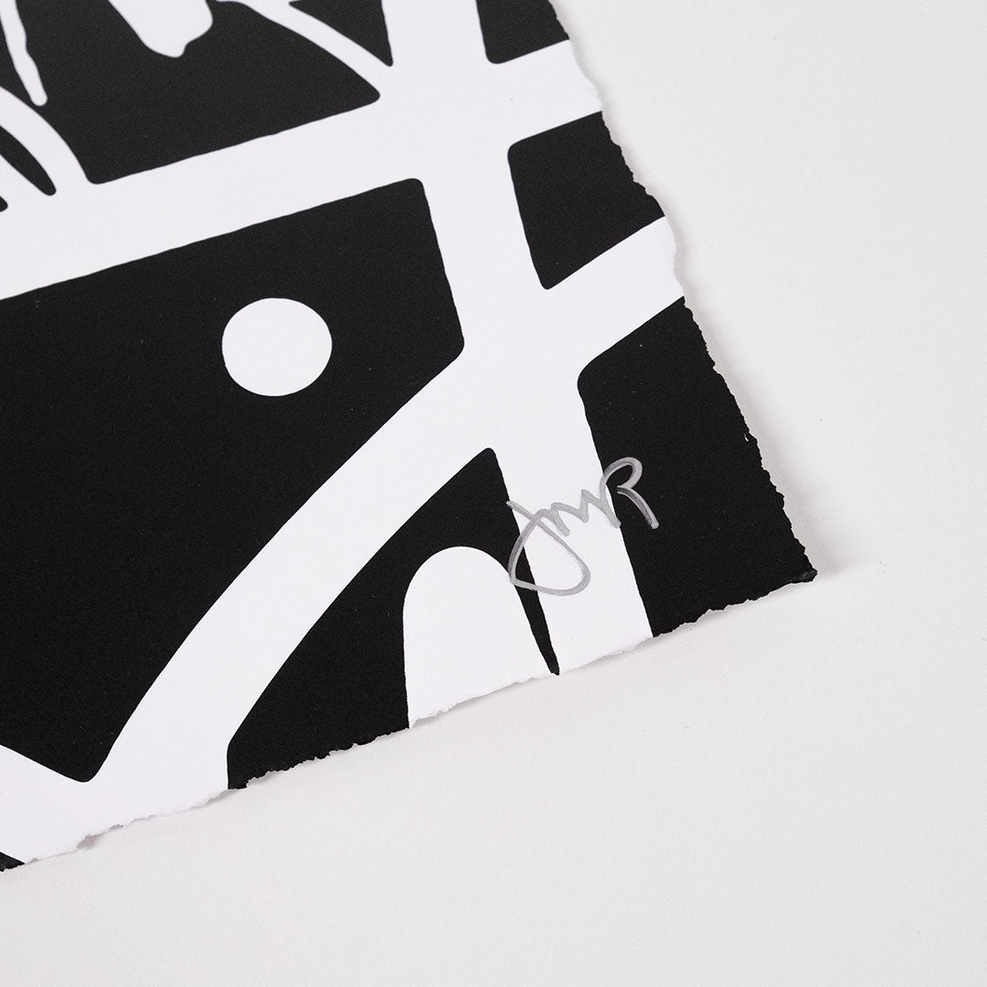 Limited-edition print by JM Rizzi. 1-Color Screen Print on Hand-Deckled Cougar 100# Smooth Fine Art Paper. 12 x 16 Inches. This artwork comes signed by the artist and with a certificate of authenticity from 1XRUN.
