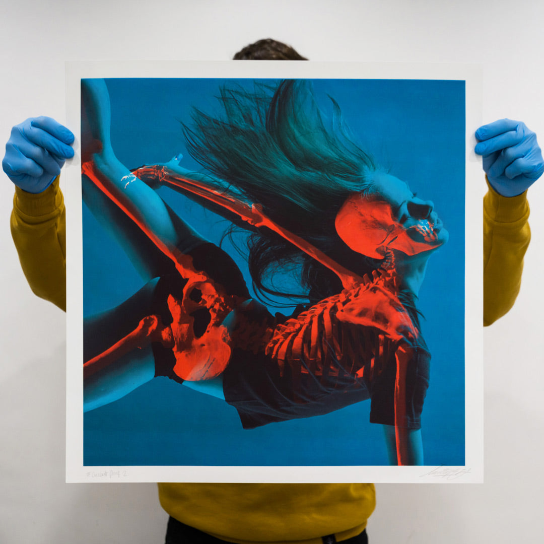 Falling In by Insane51. 5-Color 3D Screen Print with Spot Gloss on 300gsm Fabriano Artistico Fine Art Paper. Includes (2) Pairs of Anaglyphic Viewing Glasses. Edition of 200. 23.62 x 23.62 Inches. This RUN is signed, numbered and comes with a Certificate of Authenticity from Insane51 and 1xRUN.