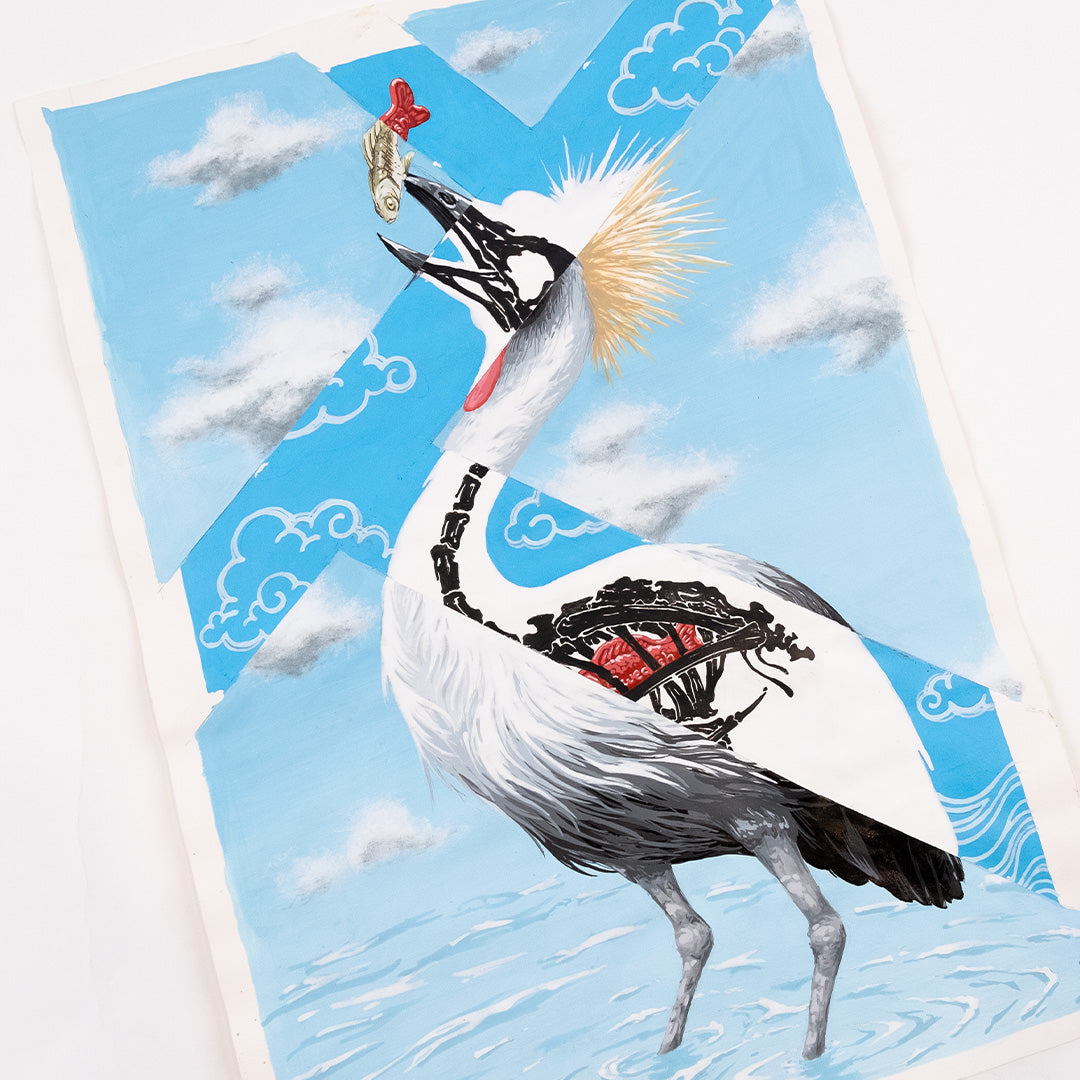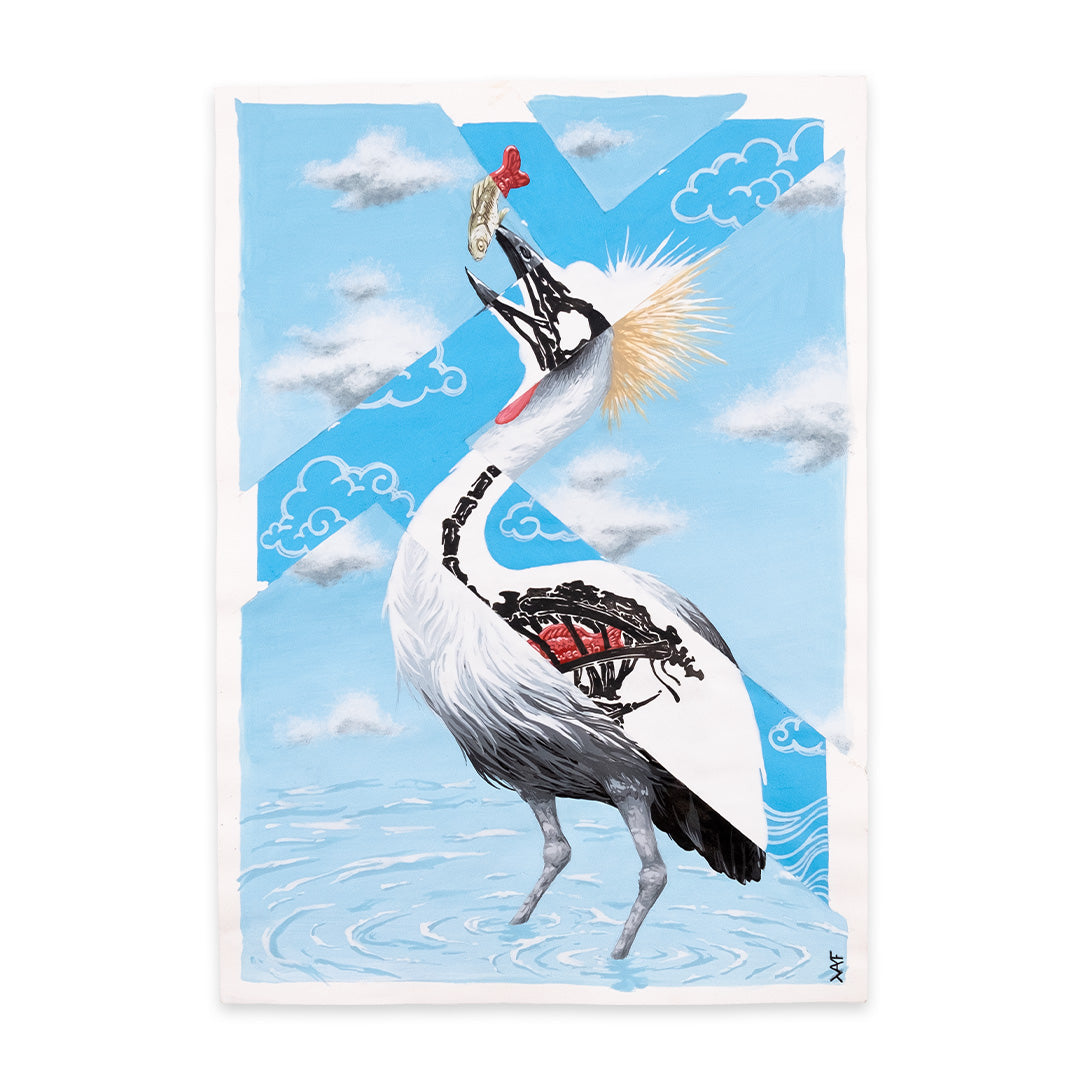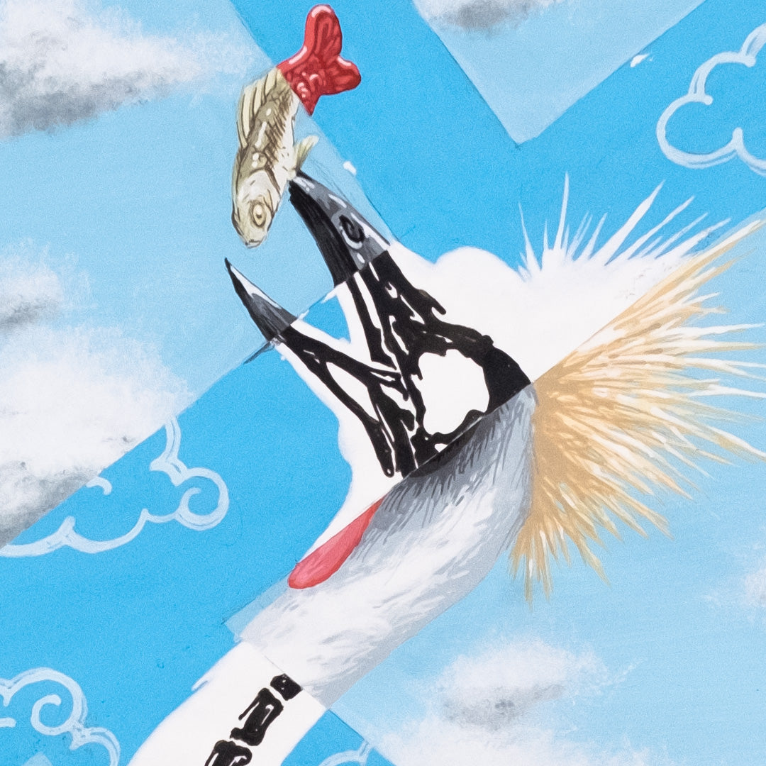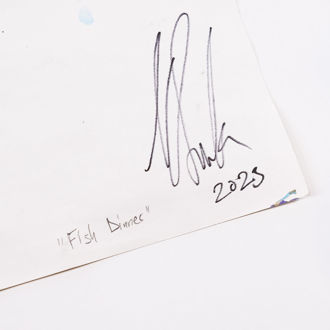 Fish Dinner by Marina Simela. Mixed Media on Archival Paper. 16.25 x 23.25 in. Comes signed by Marina Simela and with a Letter of Provenance from 1XRUN.