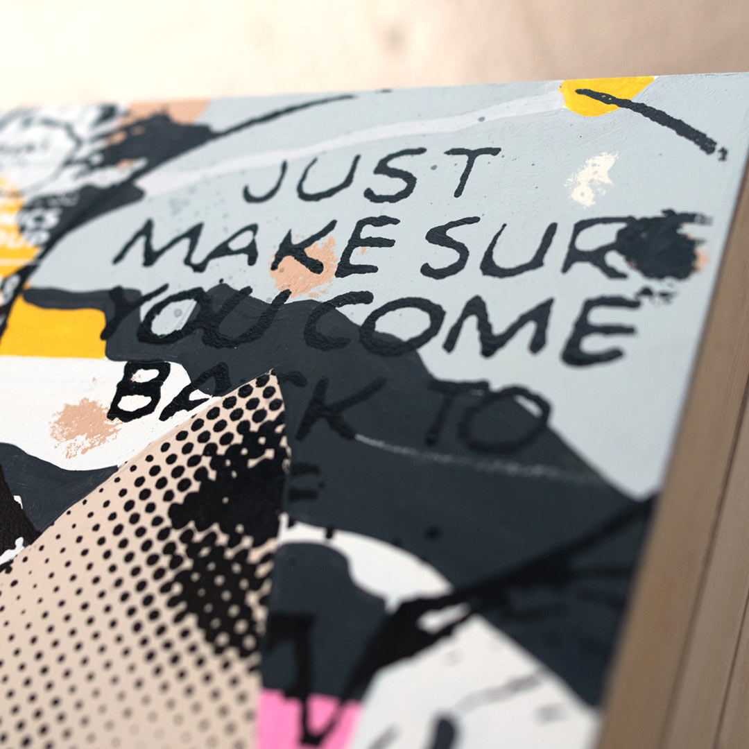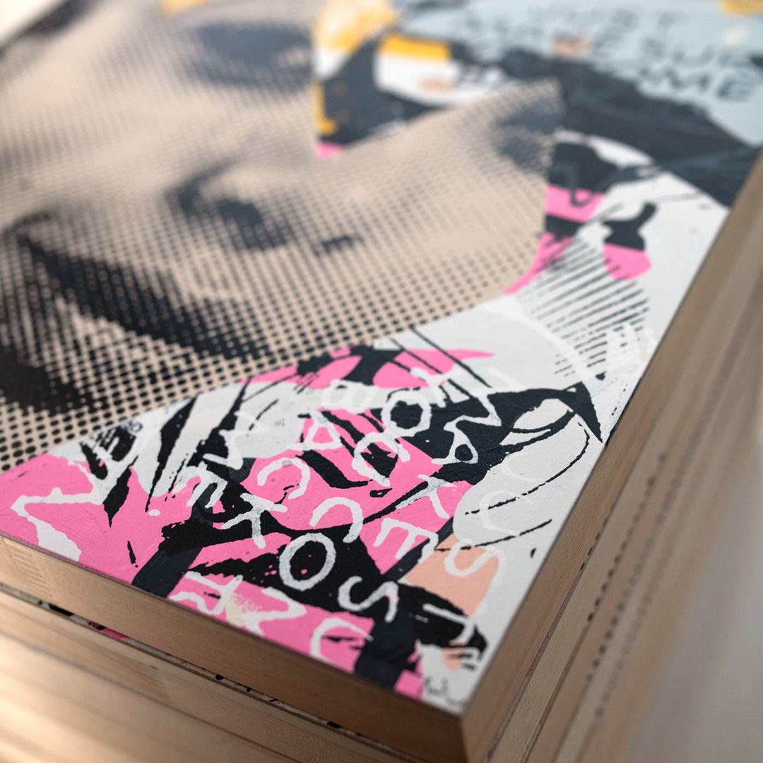 "But Wonder" by Marly McFly. 11x14" acrylic and mixed media on ready-to-hang wood panel. Limited edition of 10. Comes signed & numbered by the artist and with an official letter of provenance from 1XRUN.