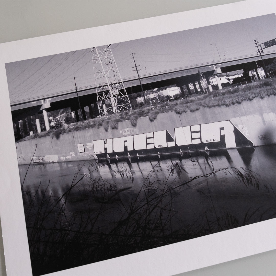 Hael's L.A River Roller 24 x 18 in. Print by HAEL. Shot by "Another Group Not Taken Serious". Archival Pigment Print on 290gsm Moab Entrada Fine Art Paper. Edition Size TBD. Each print comes numbered and signed by HAEL and with a Certificate of Authenticity from 1XRUN.