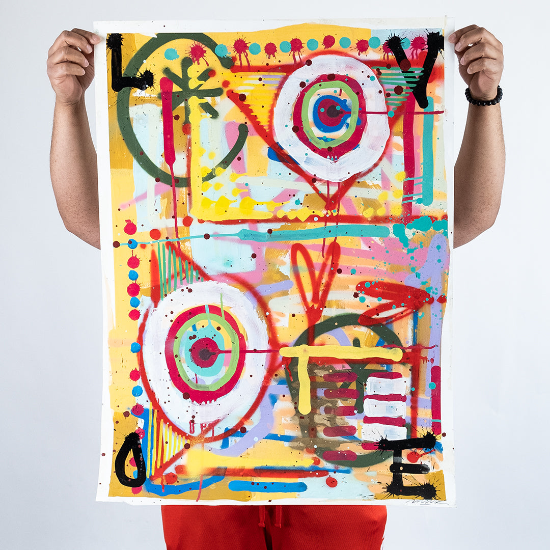 Hate It Or Love It (Part 2) by Yonus Degel. Mixed media on paper. Edition of 1. 25 x 34.5 Inches. Comes with a Letter of Provenance.