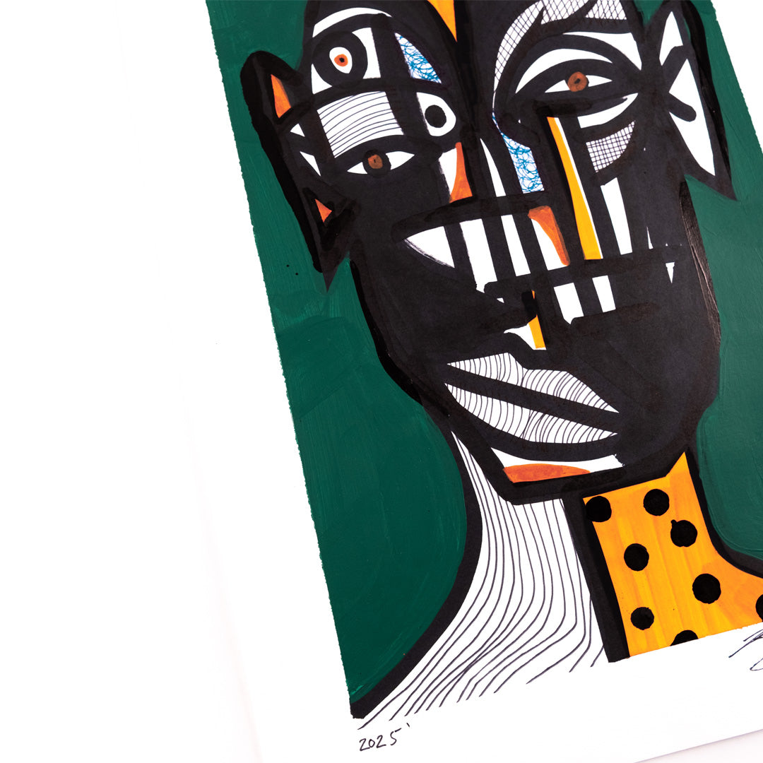 Head Series #19 by Ryan Shava. Mixed media on UF paper. 16.5 x 23.22 inches. Signed by artist and comes with a Letter of Provenance signed by 1XRUN.