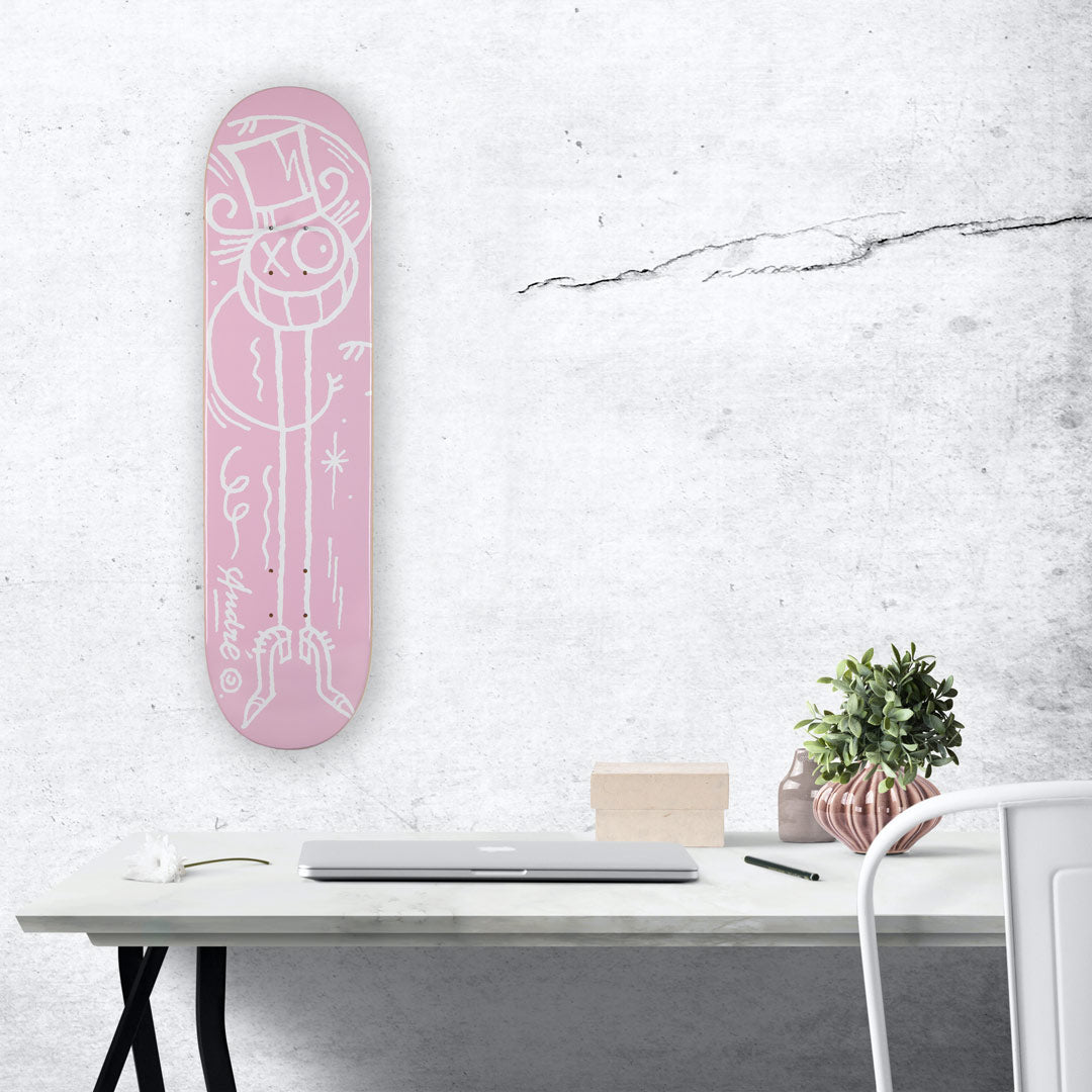 La Vie en Rose 2 By Mr. André. Archival Pigment Print Transfer on Cold Pressed Steep Natural Skate Deck. 8 x 31.875 Inches. This RUN comes with a screen-printed signature, is hand-numbered and includes a Certificate of Authenticity from Mr. Andre and 1xRUN.