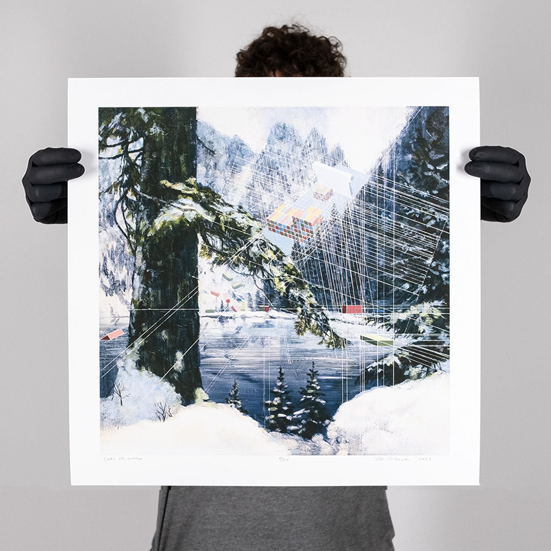 Lake 22, Winter - Standard Edition by Mary Iverson. Archival Pigment Print on 290gsm Entrada Fine Art Paper. Edition of 50. 20 x 20 Inches. This RUN is signed, numbered and comes with a Certificate of Authenticity from Mary Iverson and 1XRUN.