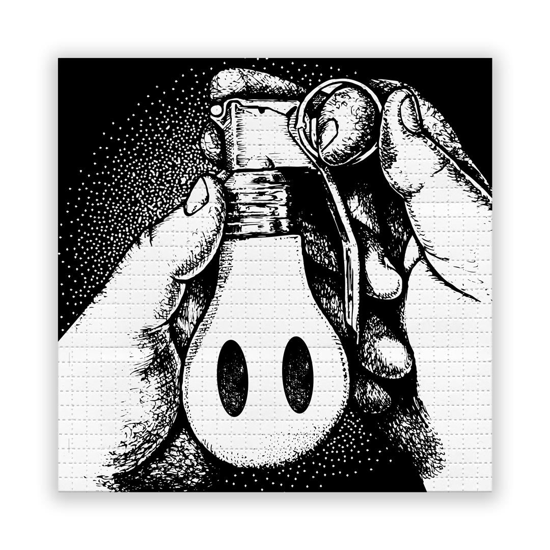 Light Cult Crypto Club | Bulb Grenade by Ron English. Archival Pigment Print on Perforated Blotter Paper. Edition of 25. 7.5 x 7.5 Inches. Comes signed with a Certificate of Authenticity.