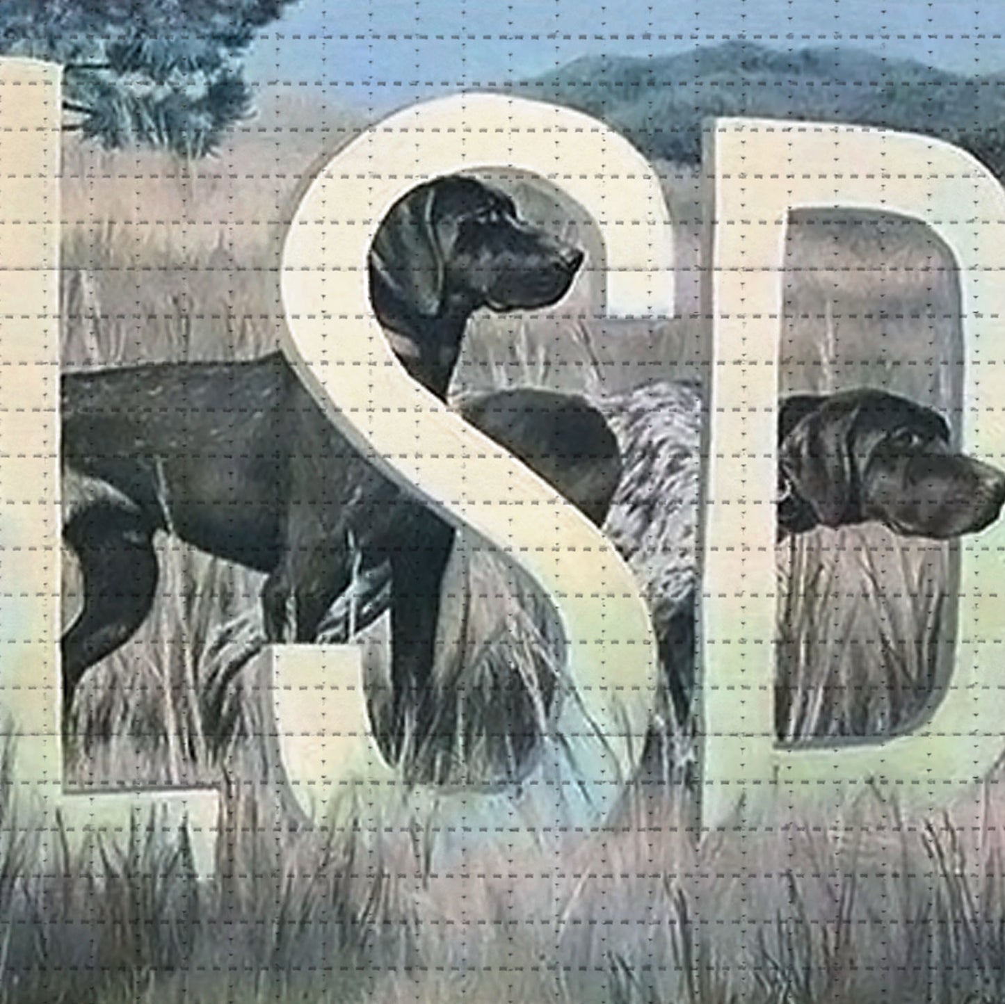 LSD Dog by Wayne White. Limited-edition archival pigment print on perforated blotter paper. 7.5 x 7.5 inches.