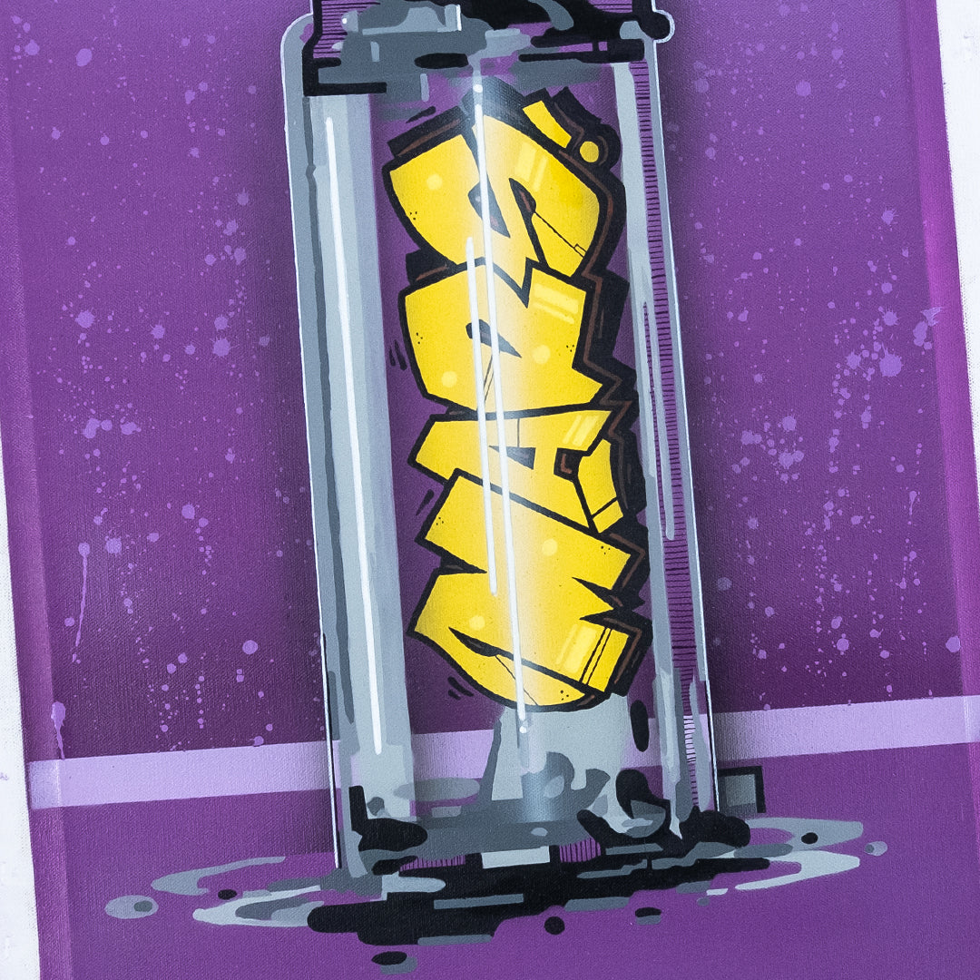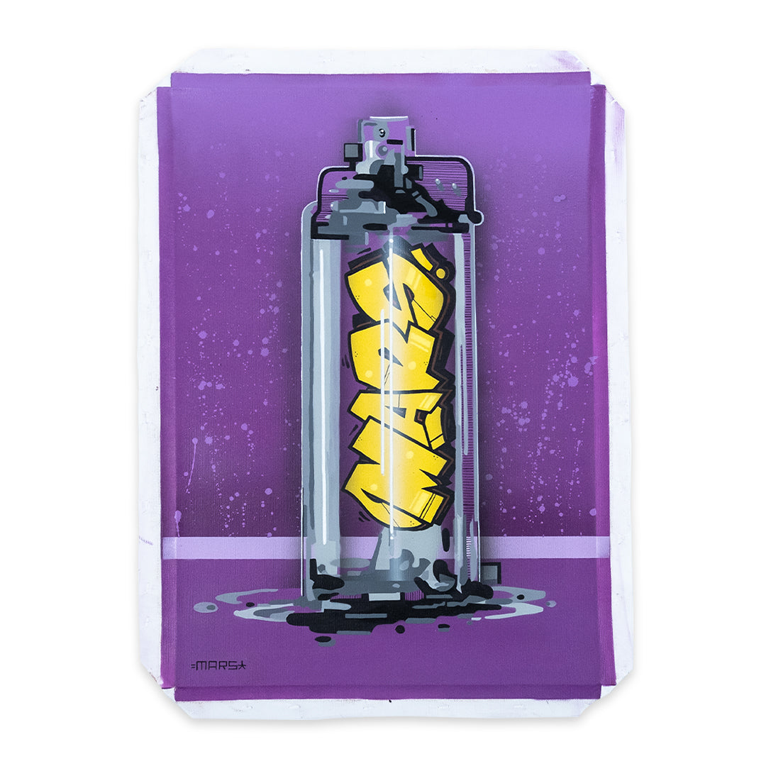 Mars Can (Purple Edition) by Mars. Acrylic and ink on unstretched canvas. Edition of 1. 12 x 16 Inches. This RUN comes signed with a Letter of Provenance.