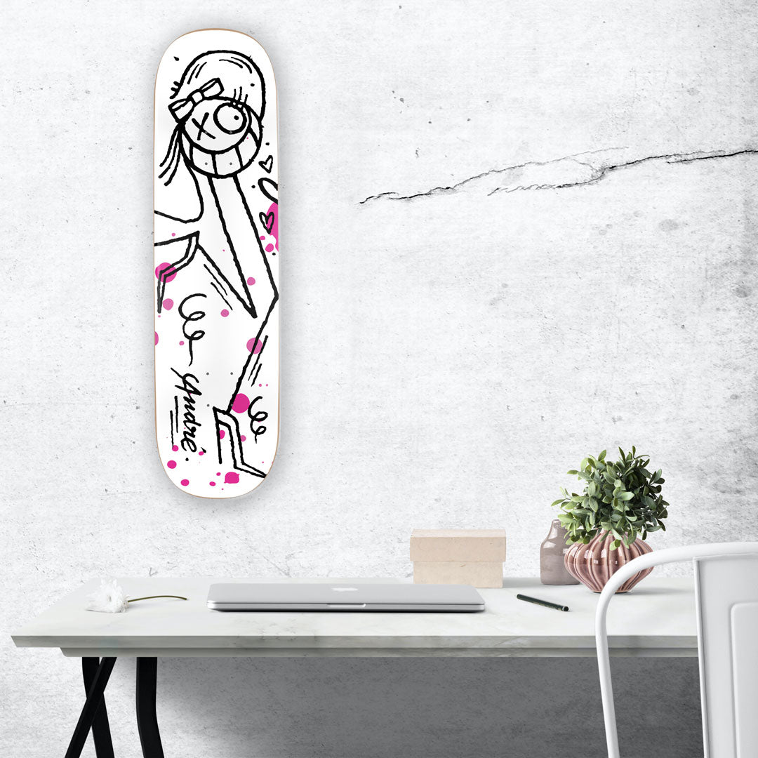 Ménage à Trois ou Quatre 2 - Variant Edition By Mr. André. Archival Pigment Print Transfer on Cold Pressed Steep Natural Skate Deck. 8 x 31.875 Inches. This RUN comes with a screen-printed signature, is hand-numbered and includes a Certificate of Authenticity from Mr. Andre and 1xRUN.