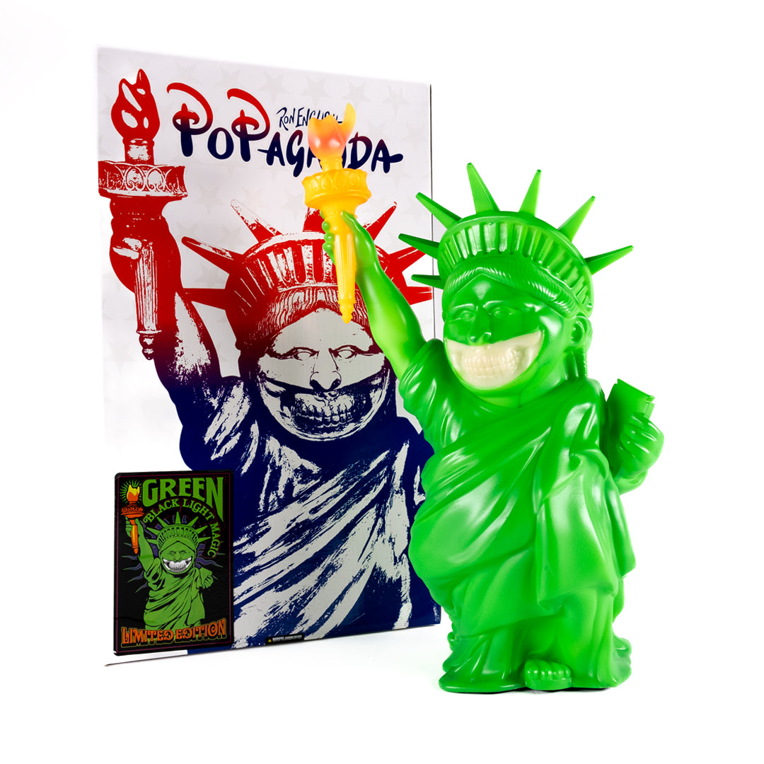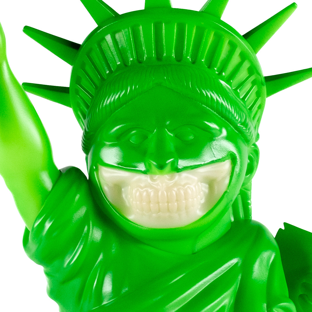 MINDstyle x Popaganda Ron English Liberty Grin Green Blacklight 22" Vinyl Figure. Stands sold separately.