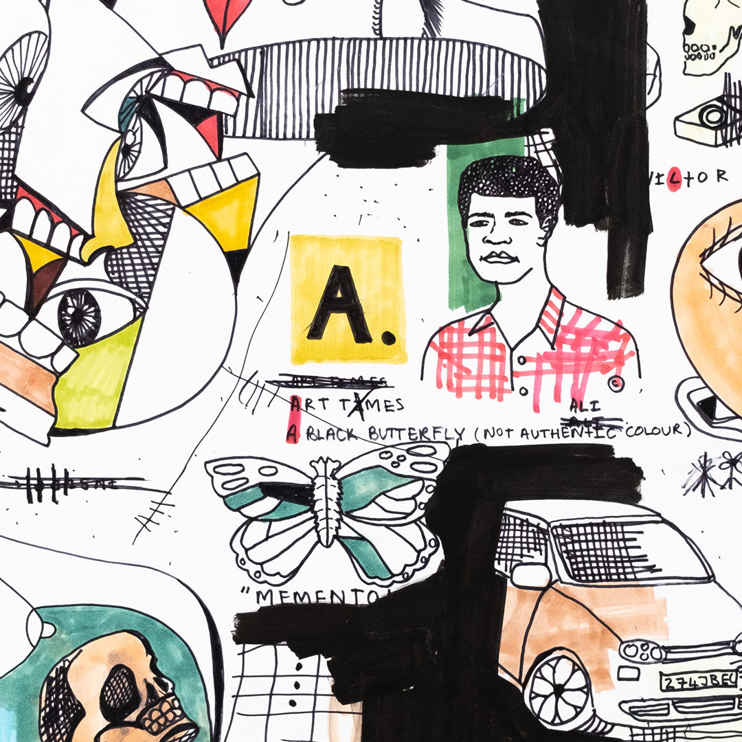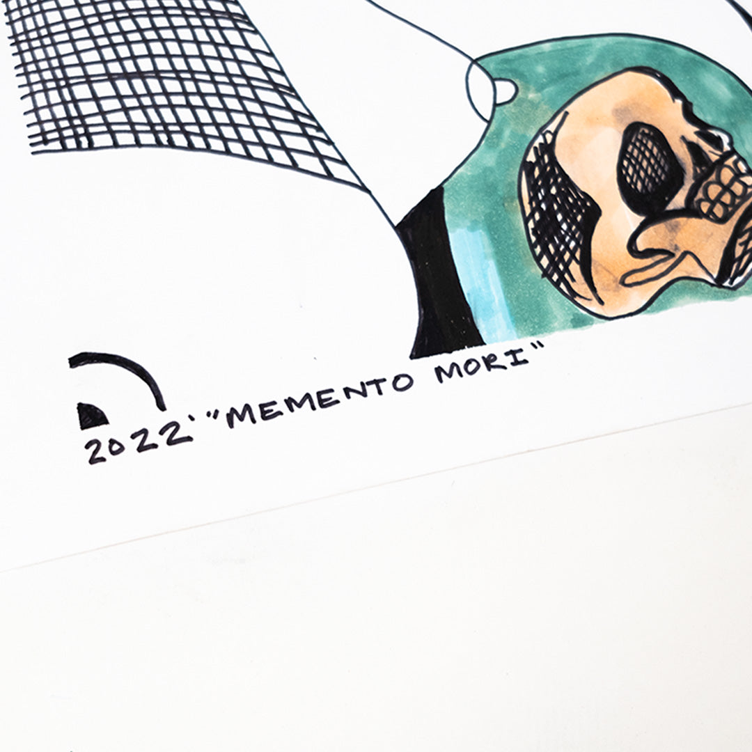 Momento Mori by Ryan Shava. Ink & acrylic on paper. Edition of 1. 11 x 17 Inches. Comes with a Letter of Provenance.