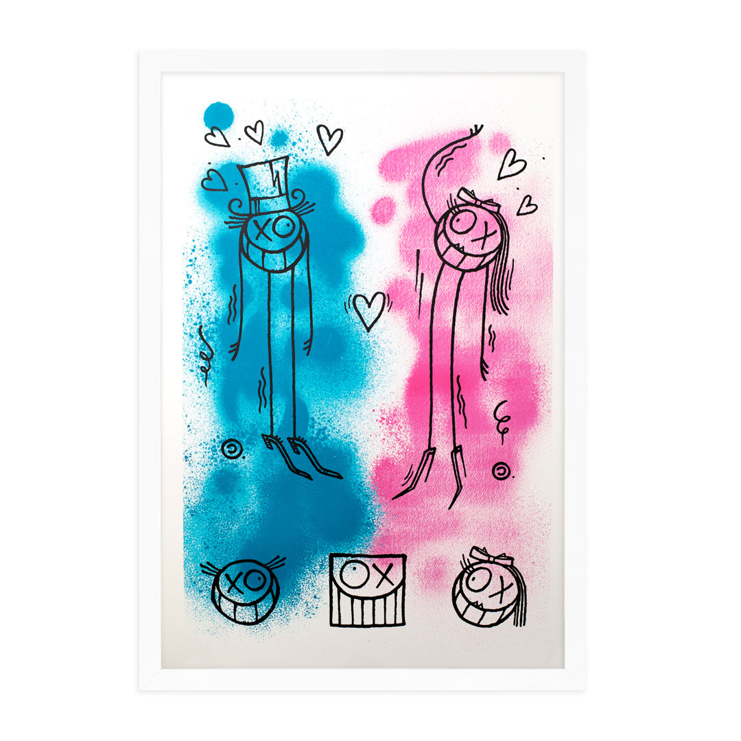 Mr. A & Miss A - Uncut Love Edition by Mr. André. 6-Color Screen Print on 300gsm Somerset Satin 100% Cotton Fine Art Paper. 27 x 39 Inches. Run of 100. This RUN comes signed, numbered, and with a Certificate of Authenticity from Mr. André and 1xRUN.