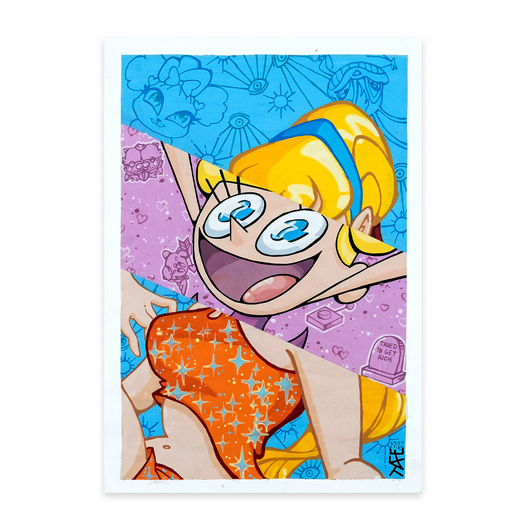 Marina's work emphasizes her return to nostalgia and the need to reassess and reimagine imagery we frequented and consumed as children. Her art making practice is new and emphasizes the artists need to return to imagery that evokes a playful nature and tongue in cheek disposition towards art making and her creative practice in tattooing and art making.