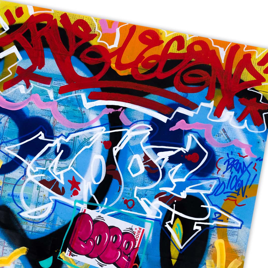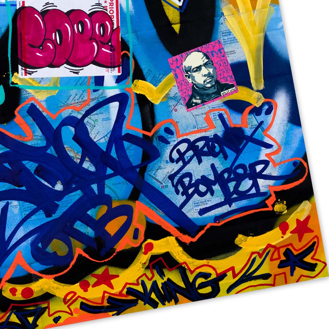 NYC Subway Map VII - True Legend Original Artwork by Cope2. Mixed-Media on New York City Subway Map. Edition of 1. 22.94 x 32.5 Inches. Comes with a Letter of Provenance
