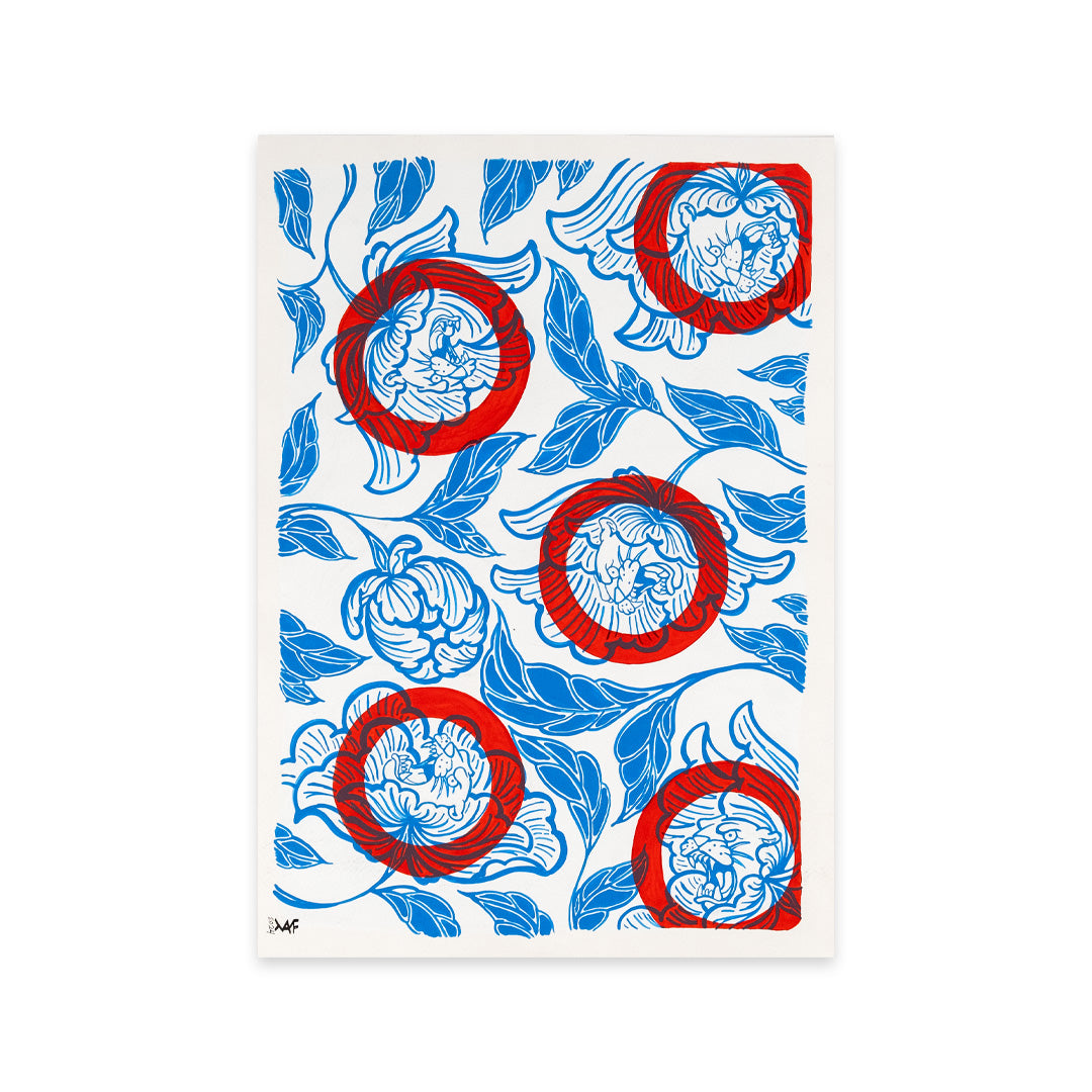 In the artwork ‘Blood in the streets’(2025), the inspiration comes from a quote by the 18th century banker, Baron Rothschild, “The time to buy is when there’s blood in the streets, even if that blood is your own.” The callousness of the quote and the cheerfulness of the painting create a memorable juxtaposition.