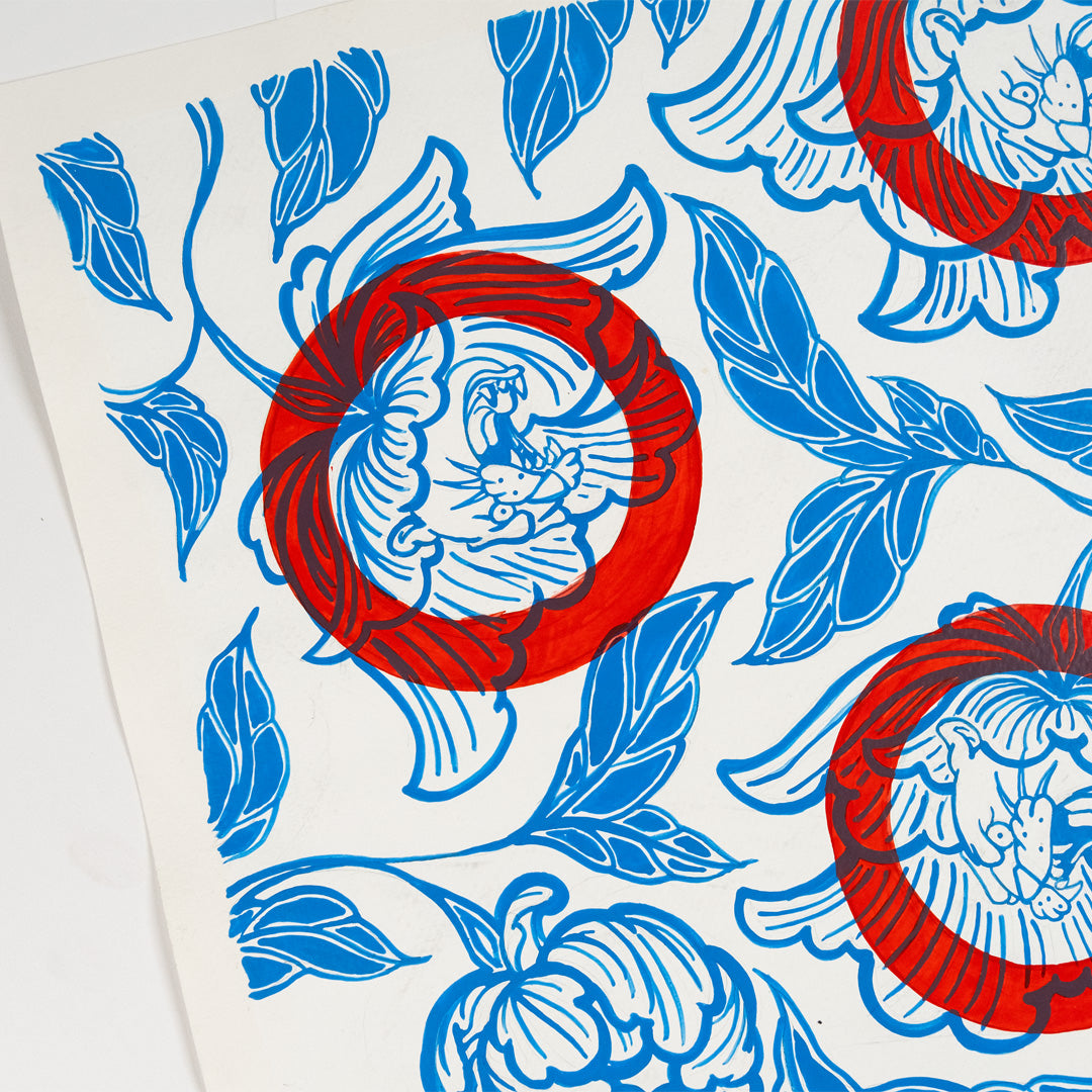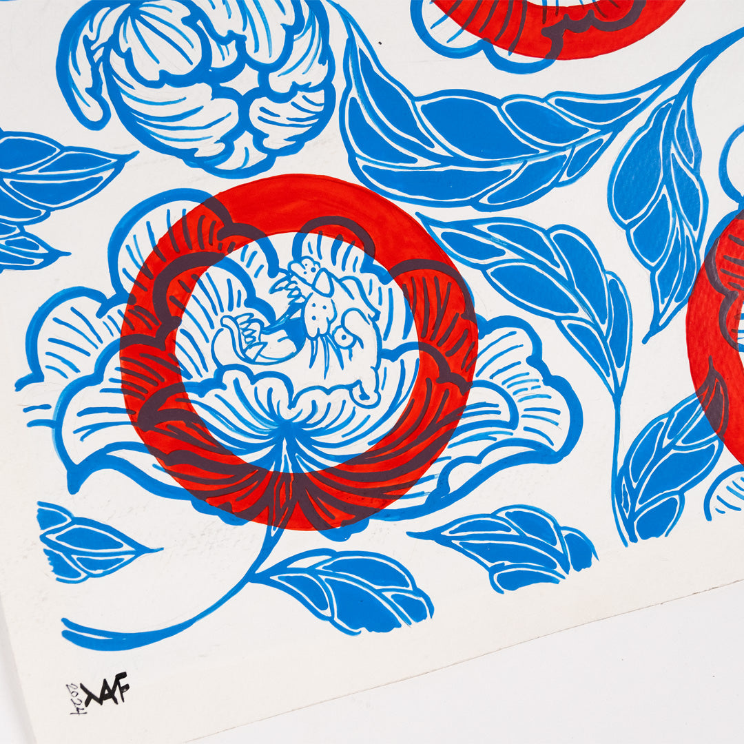 The inspirations for the artwork in this collection are varied and fascinating. From plumes of incense smoke, tp African wax print fabric with an American traditional tattoo twist, to cartoon characters with the teeth of a sea turtle (google ‘sea turtle teeth.’ You won’t be disappointed.)