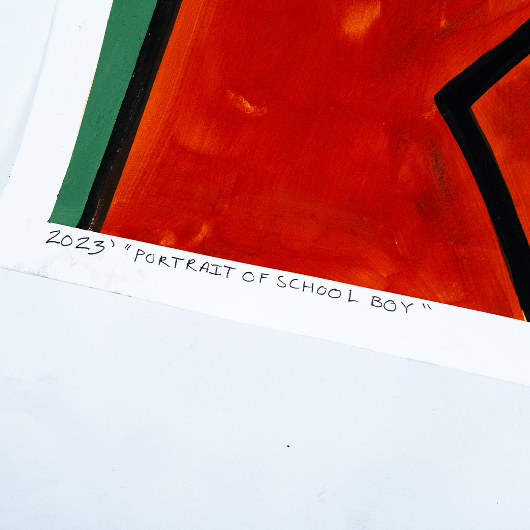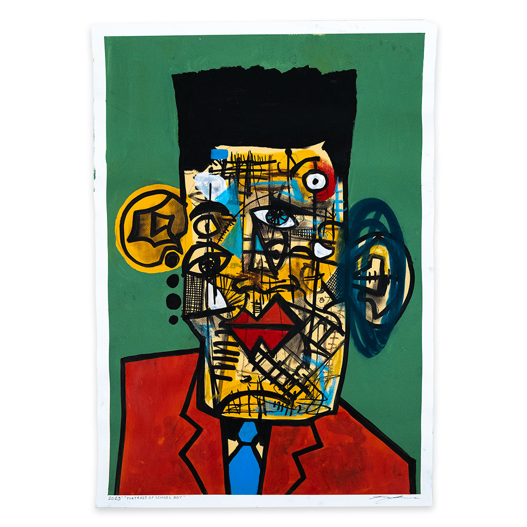 Portrait of School Boy by Ryan Shava. Mixed Media on Paper. 27.5 x 39 Inches