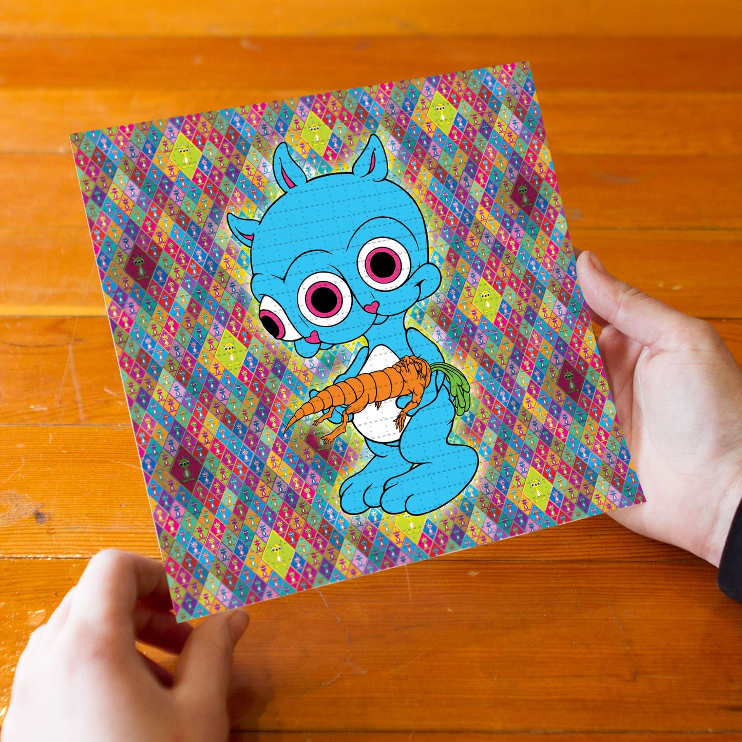 Rabbbit by Ron English. Limited-edition archival pigment print on perforated blotter paper. 7.5 x 7.5 inches.
