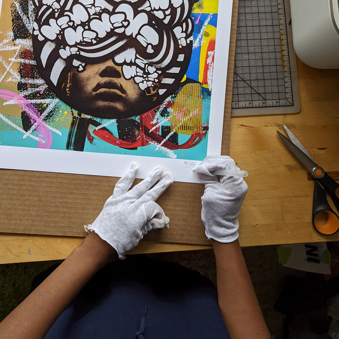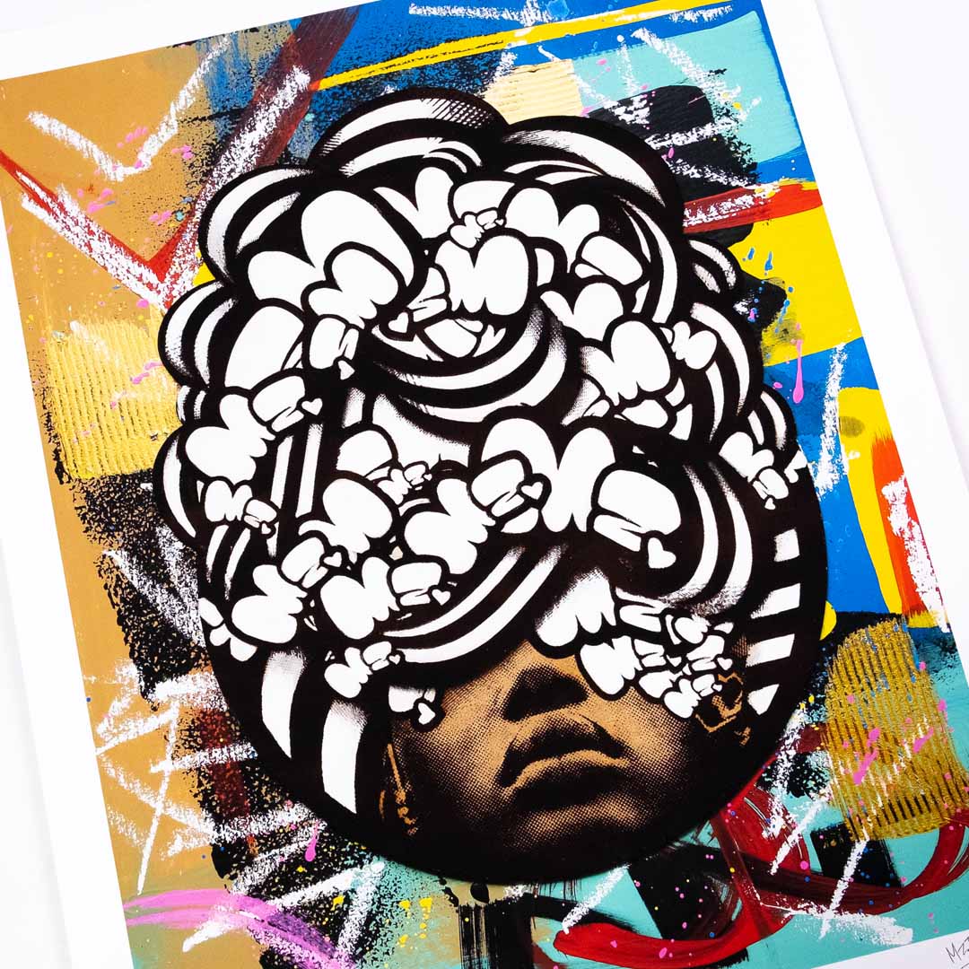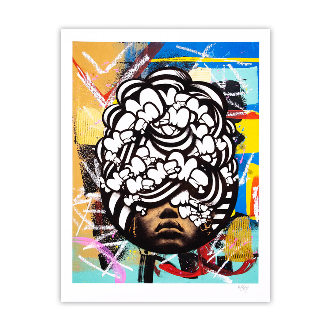 Respect on Her Name #010 by Mz. Icar. Archival Pigment Print on 290gsm Moab Entrada Fine Art Paper. Edition of 25. 17 x 22 Inches. This RUN comes signed & numbered by the artist and with a Certificate of Authenticity from 1XRUN.