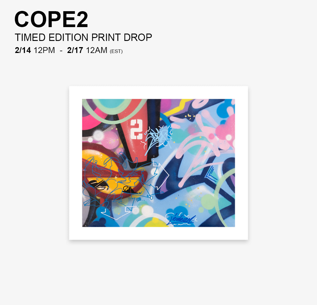 Timed Edition Print. This edition drops 2/14/25 @ 12pm (est) and is available to purchase until 2/17/25 @ midnight (est). Edition size is determined by sales. Orders will start shipping by mid to end of March. Each print comes with a certificate of authenticity signed by Cope 2 and 1XRUN.