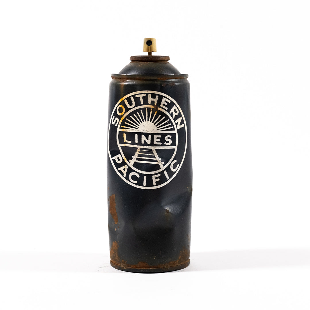 Southern Pacific Derailment #1 Can by Lyric One. Hand Painted Spray Paint Can. 2.5 x 7 Inches. Edition of 1.