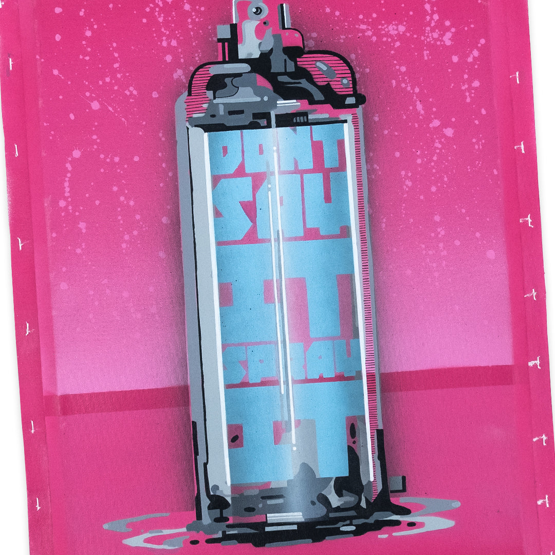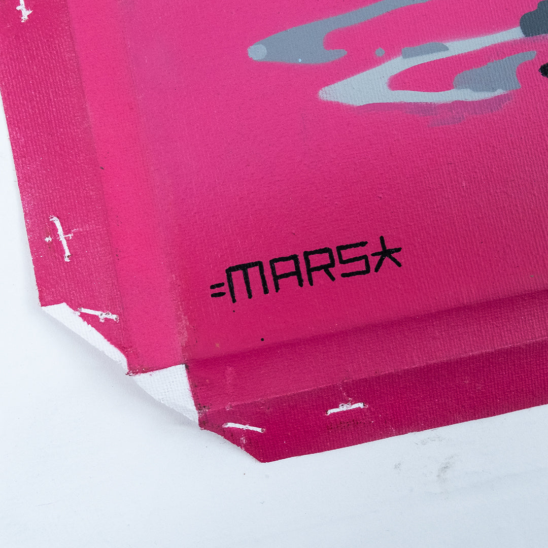 Spray It Don't Say It (Pink Edition) by Mars. Acrylic and ink on unstretched canvas. Edition of 1. 12 x 16 Inches. This RUN comes signed with a Letter of Provenance.