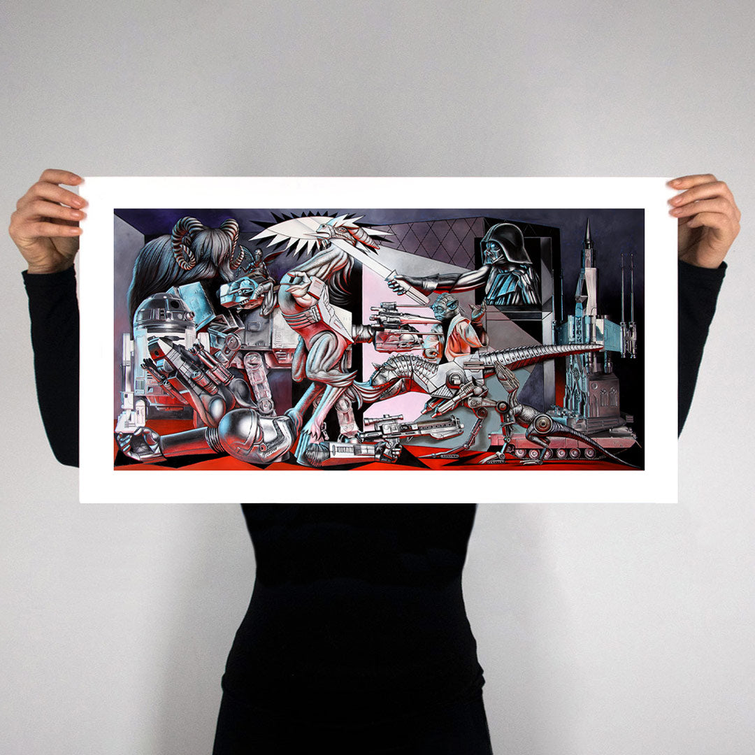 Star Wars Guernica by Ron English. Archival Pigment Print on 290gsm Moab Fine Art Paper. Edition of 200. 27.5 x 15 Inches. Comes signed with a Certificate of Authenticity.