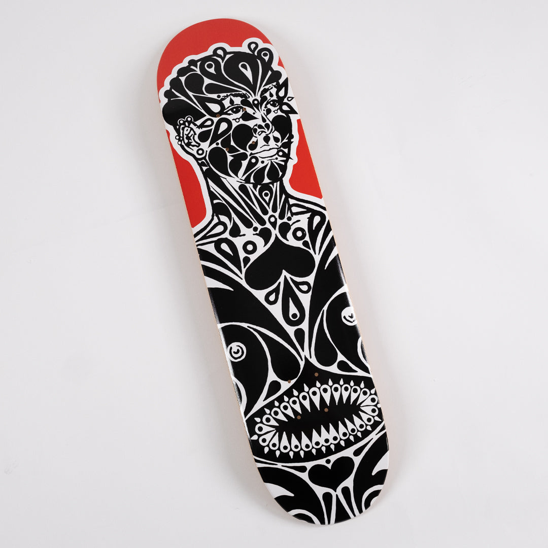 8 x 31.88 in skate deck. Archival Pigment Print Transfer on Cold Pressed Steep Natural Skate Deck. Edition Size TBD.