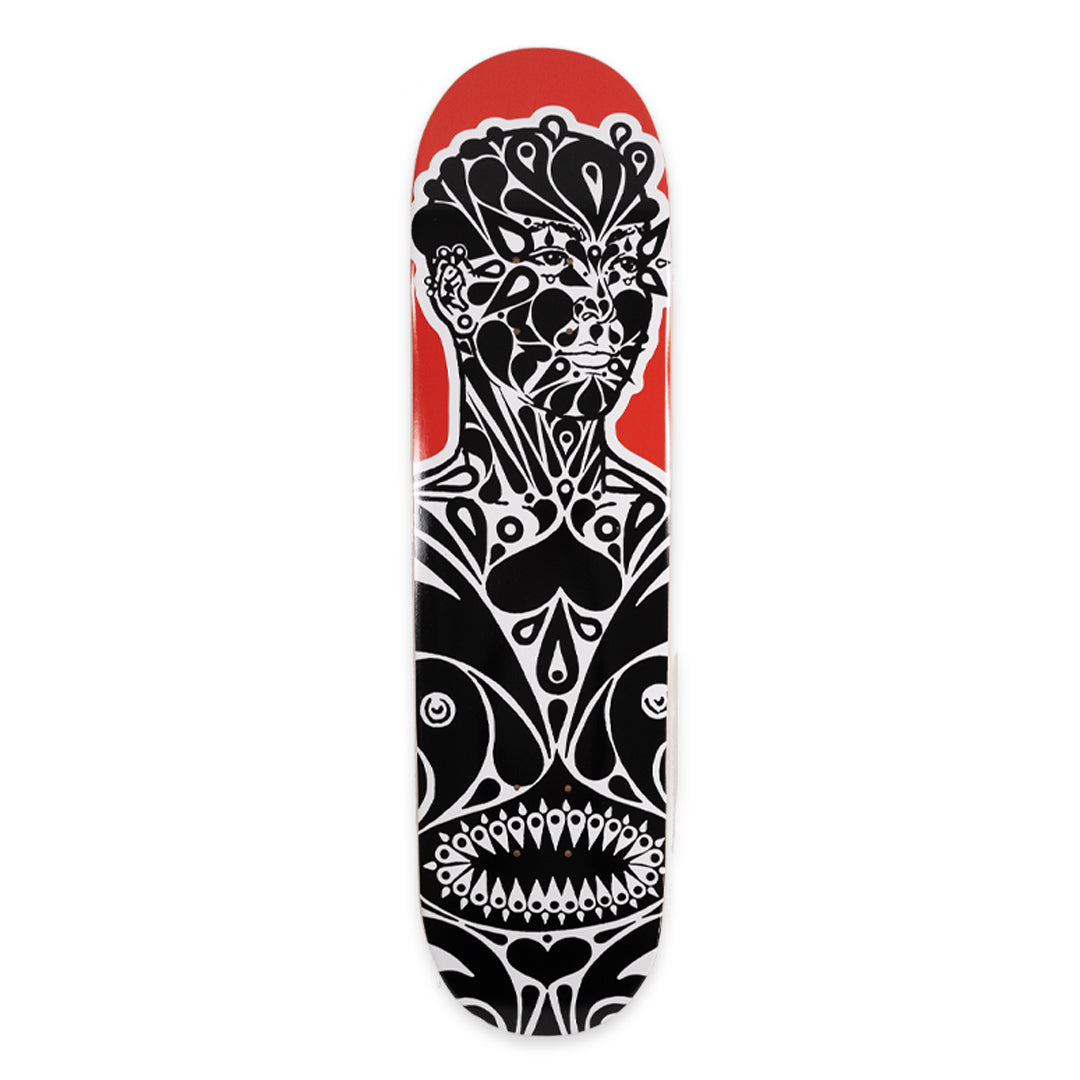8 x 31.88 in skate deck. Archival Pigment Print Transfer on Cold Pressed Steep Natural Skate Deck. Edition Size TBD.