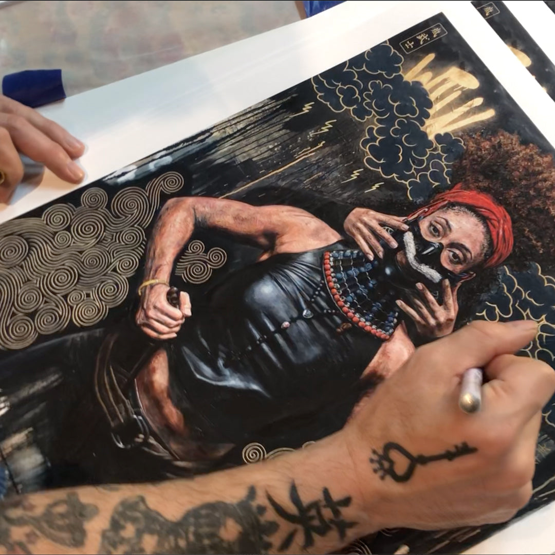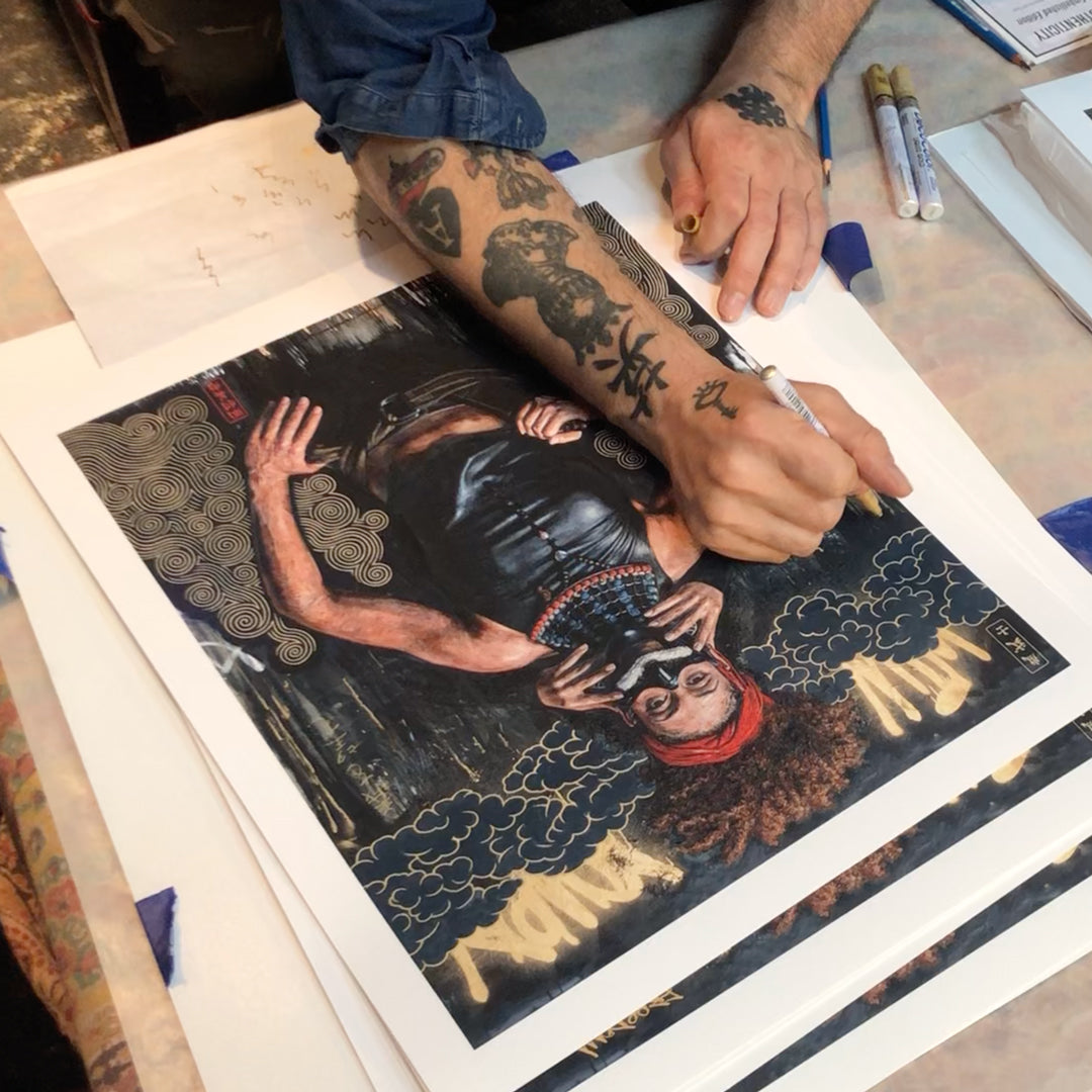 Storm Warrior - Hand-Embellished Edition by Tim Okamura. Hand-Embellished Archival Pigment Print on 290gsm Moab Fine Art Paper. Edition of 15. 16 x 20 Inches. This RUN comes signed, numbered and with a Certificate of Authenticity from Tim Okamura and 1xRUN.