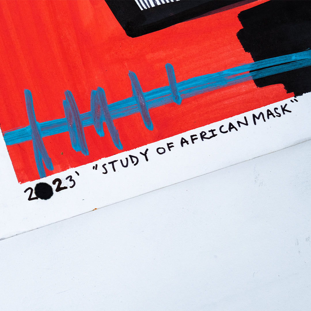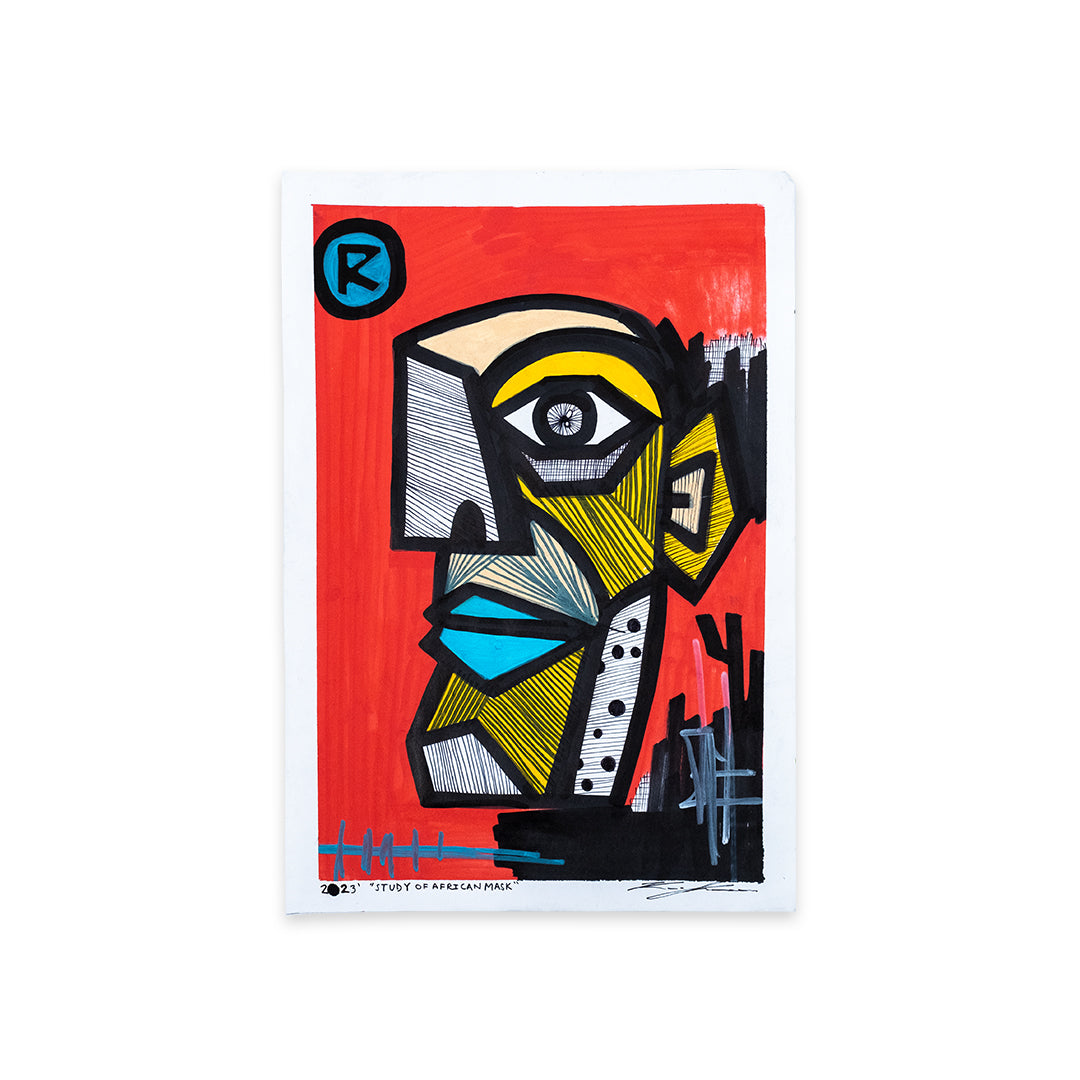 Study of African Mask by Ryan Shava. Ink on Paper. 11.25 x 16.5 Inches
