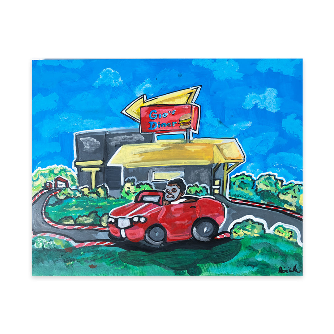 The Exhibit of the Local Diner by Giovanni Gulley. Acrylic on Wood Panel. Edition of 1. 16 x 20 Inches. Comes with a Letter of Provenance.