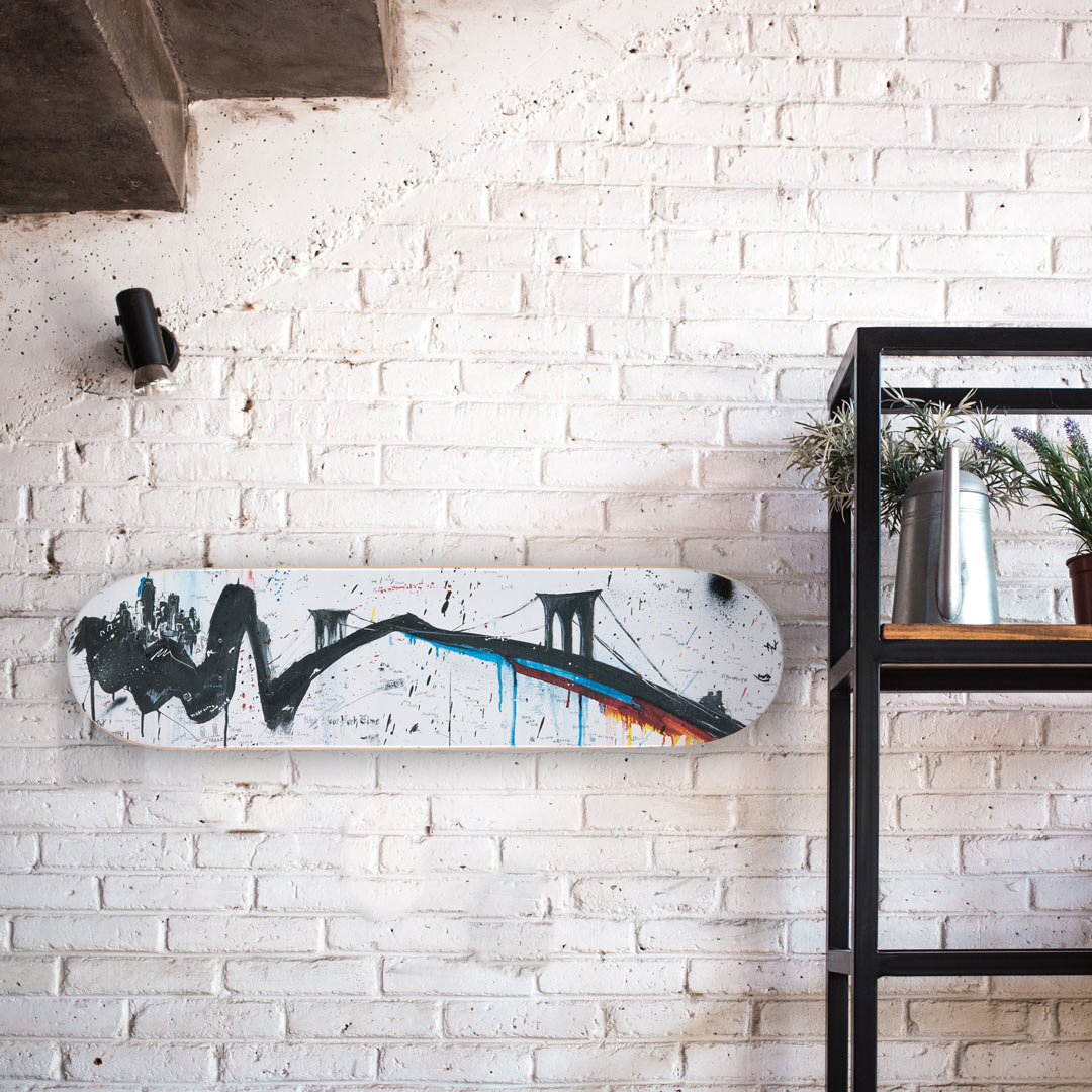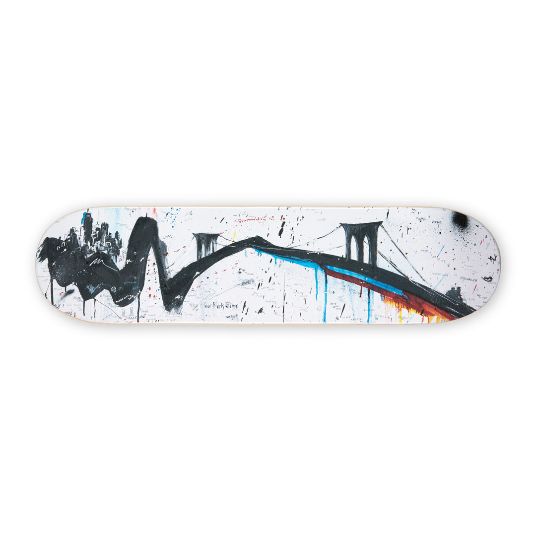The New York Time by Gregory Siff. Archival Pigment Print Transfer on Cold Pressed Steep Natural Skate Deck. Edition of 50. 8.25 x 31.875 Inches. This RUN comes with a screen-printed signature, is hand-numbered and includes a Certificate of Authenticity from Gregory Siff and 1xRUN.