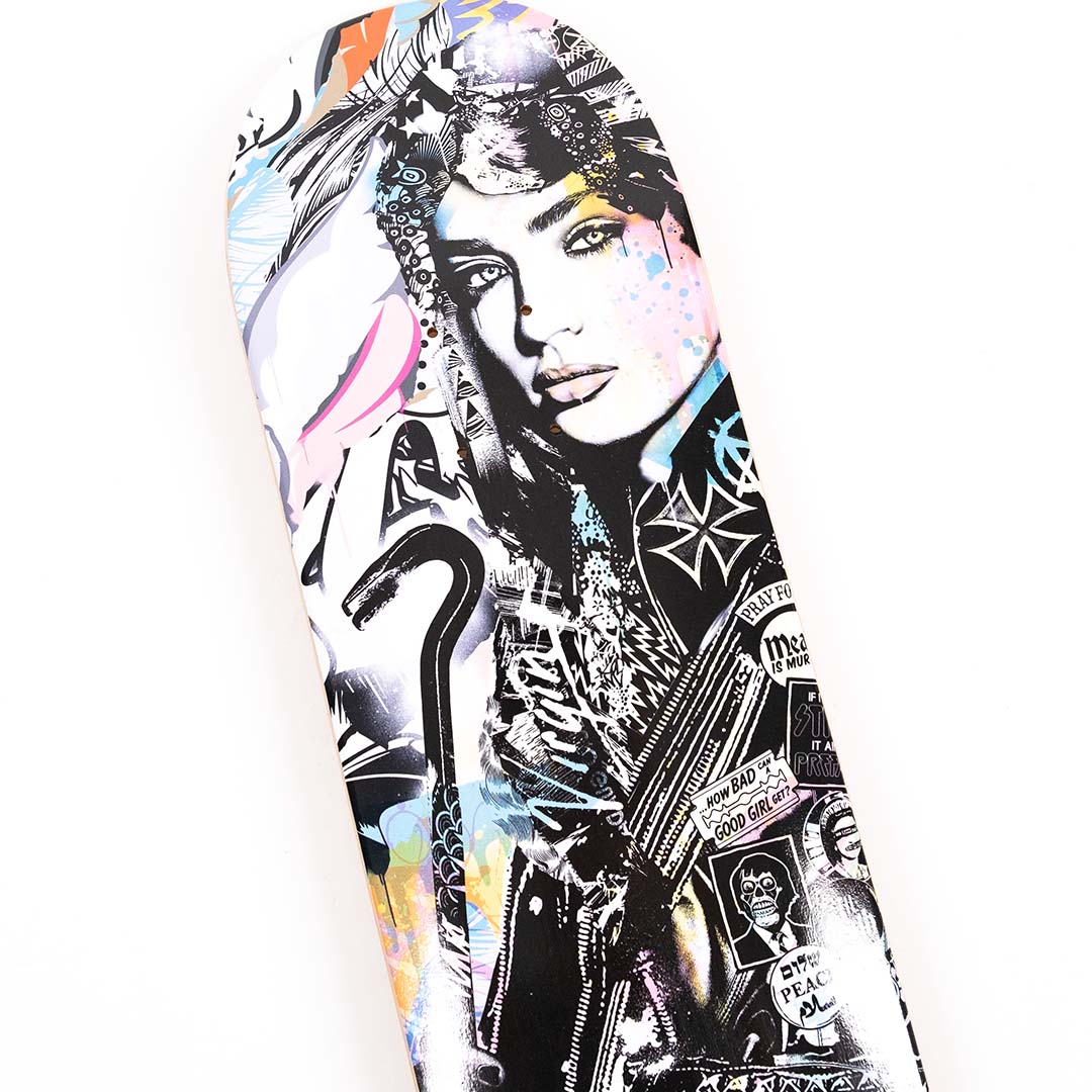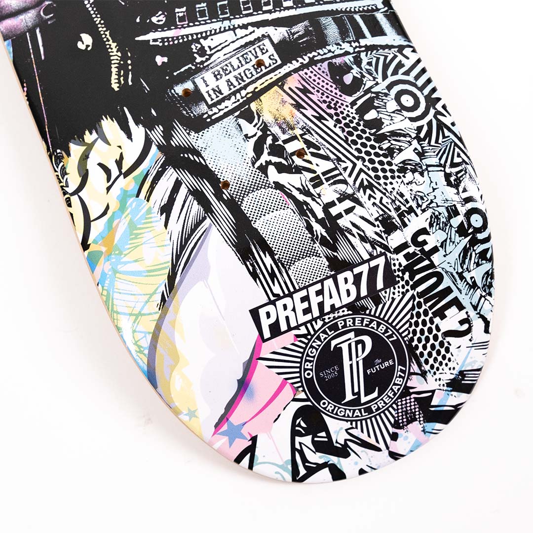 Archival Pigment Print Transfer on Cold Pressed Steep Natural Skate Deck by Prefab77. 8.25 x 31.875 Inches. Edition of 75. This RUN comes with a Certificate of Authenticity from 1XRUN.