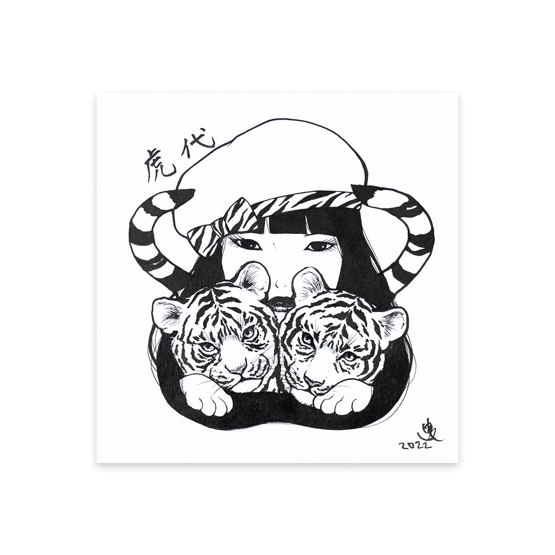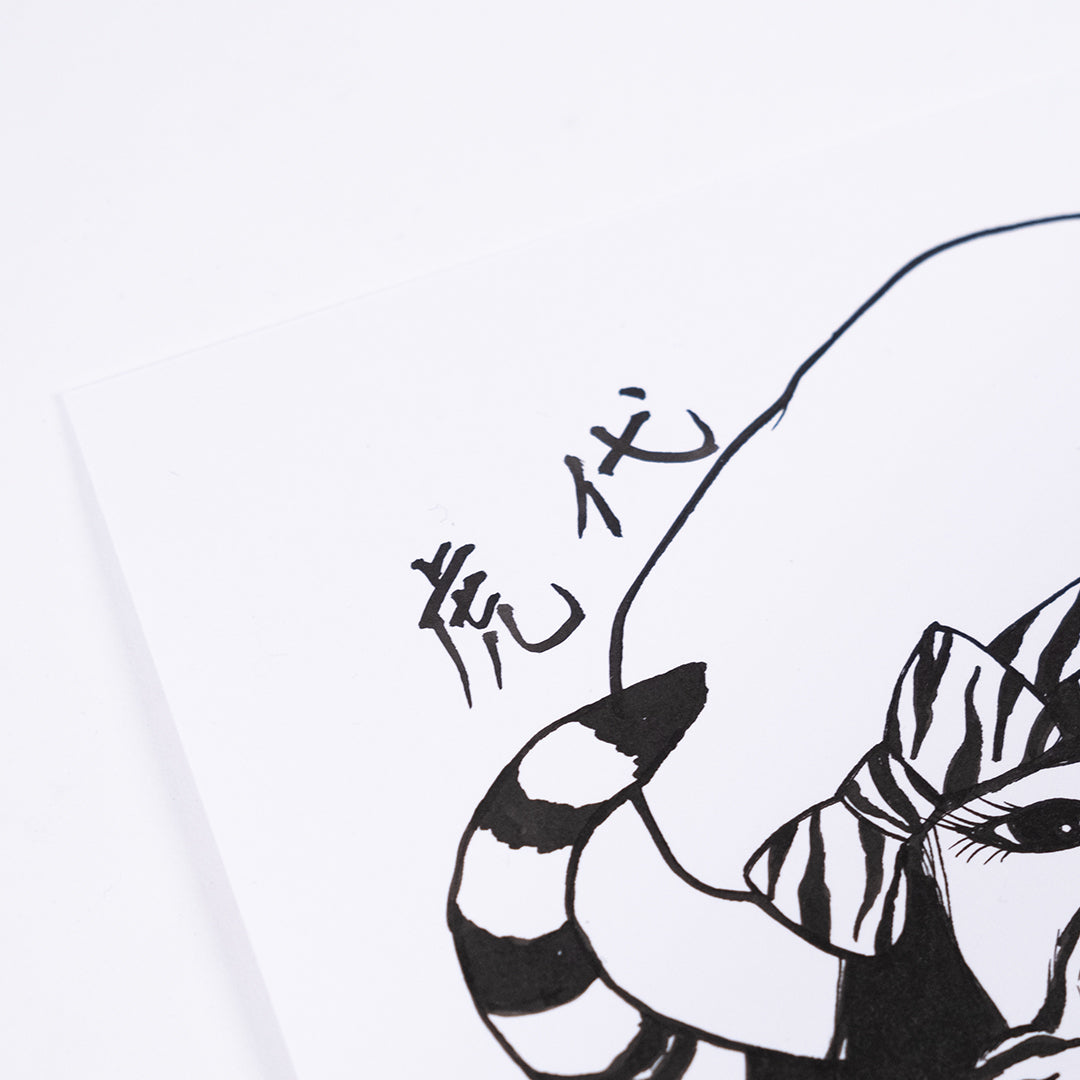 Tora-yo by Yumiko Kayukawa.Sumi Ink on Paper. Edition of 1. 7 x 7 Inches. This RUN comes signed, numbered and with a Letter of Provenance from Yumiko Kayukawa and 1xRUN.