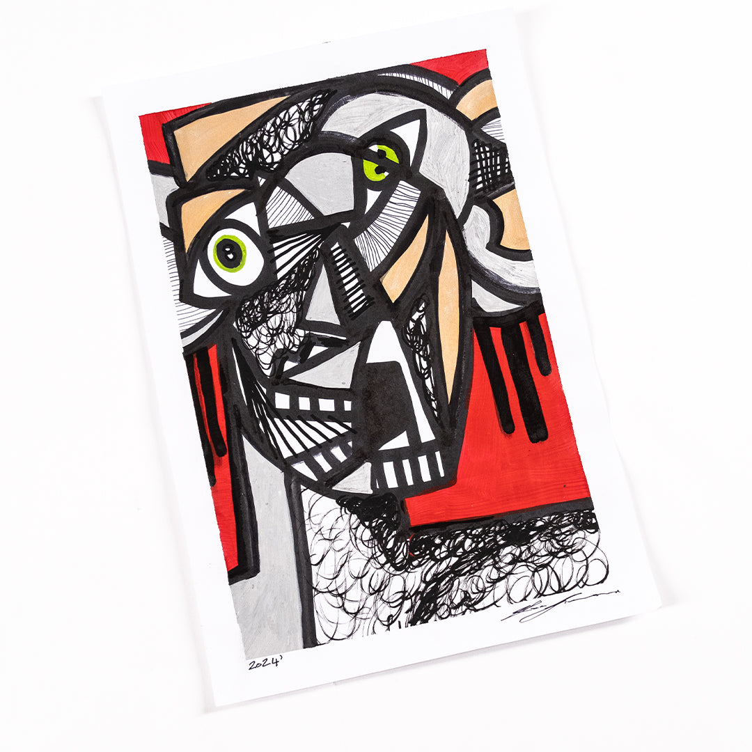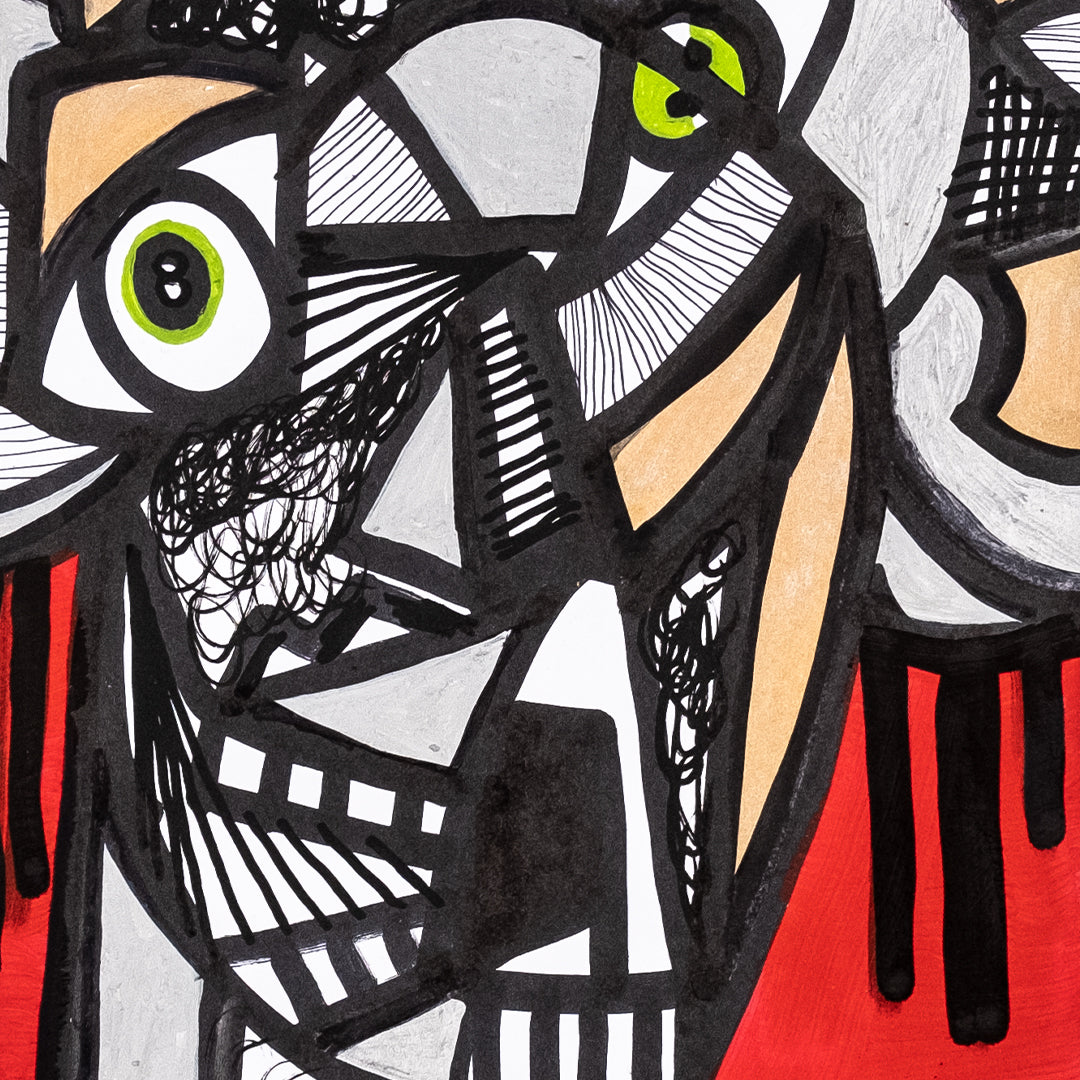 Cubist Study II by Ryan Shava. Ink and mixed media on paper. 11.25 x 16.5 inches. Signed by artist and comes with a Letter of Provenance signed by 1XRUN.