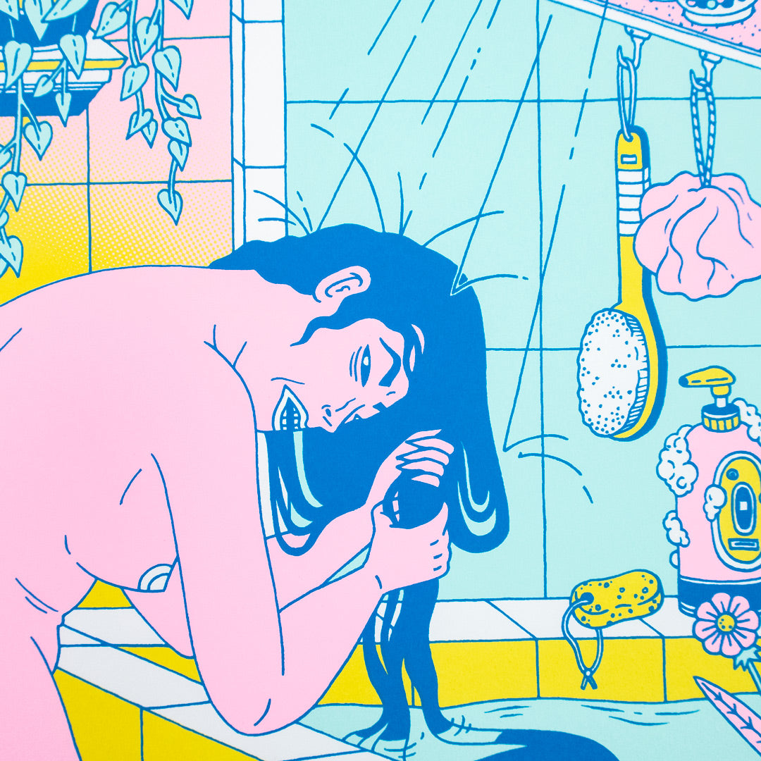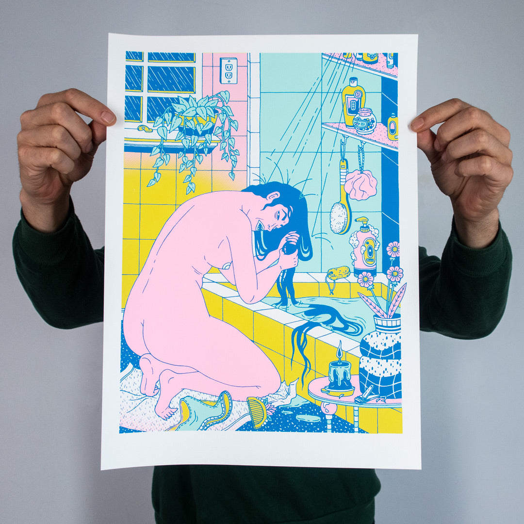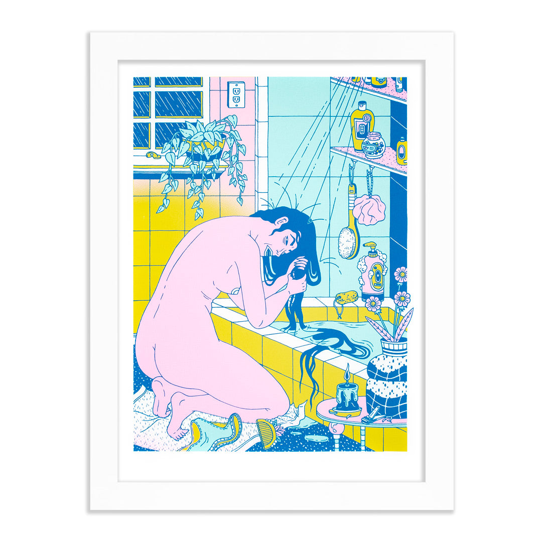 Water Falling - Standard Edition by Kristen Liu-Wong. 4-Color Screen Print on 290gsm Coventry Rag Vellum. Edition of 40. 13 x 18 Inches. This RUN comes signed, numbered, and with a Certificate of Authenticity from Kristen Liu-Wong and 1xRUN.