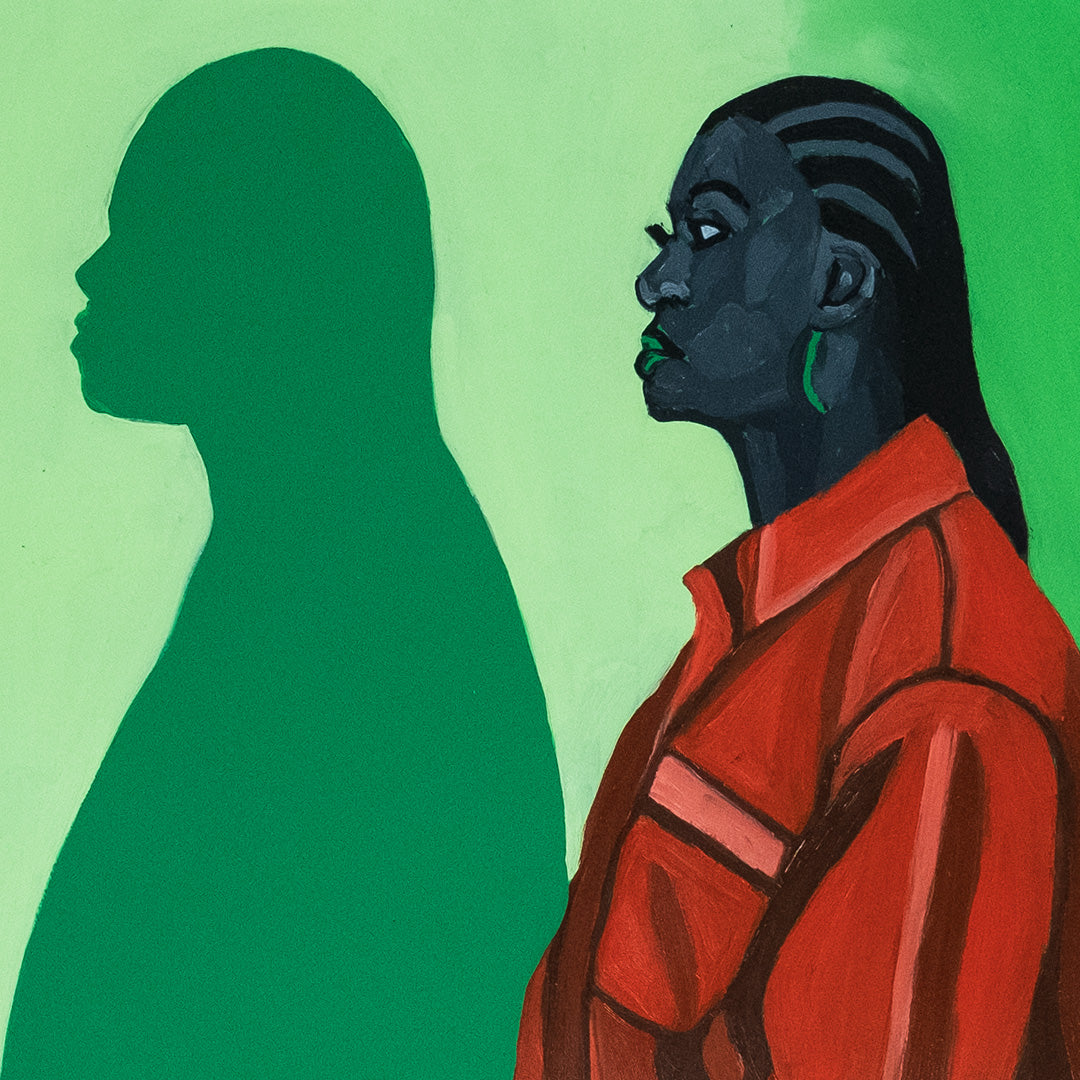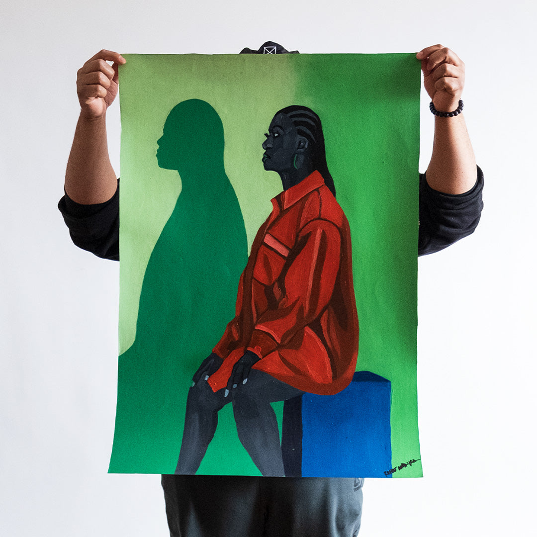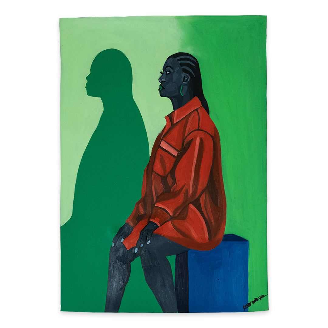 Woman with Shadow by Richie Madyira. Oil on paper. Edition of 1. 23.625 x 33.25 Inches. Comes with a Letter of Provenance.