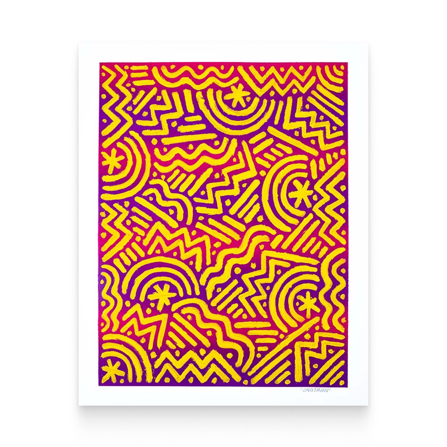 Zig Zag Painting by Snoeman. Aerosol and Paint Stick on Fine Art Paper. 19 x 24 Inches. This artwork comes signed by the artist and with an official letter of provenance from 1XRUN.