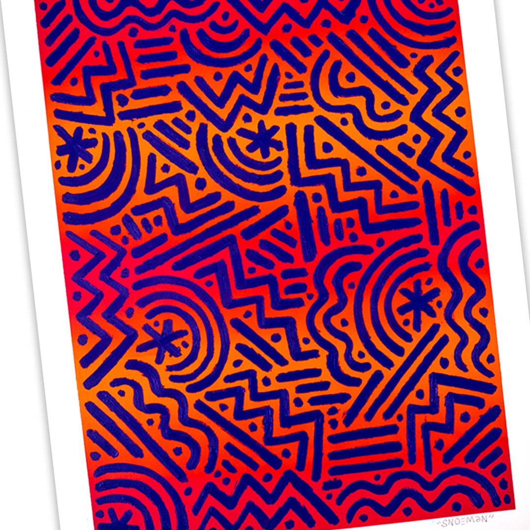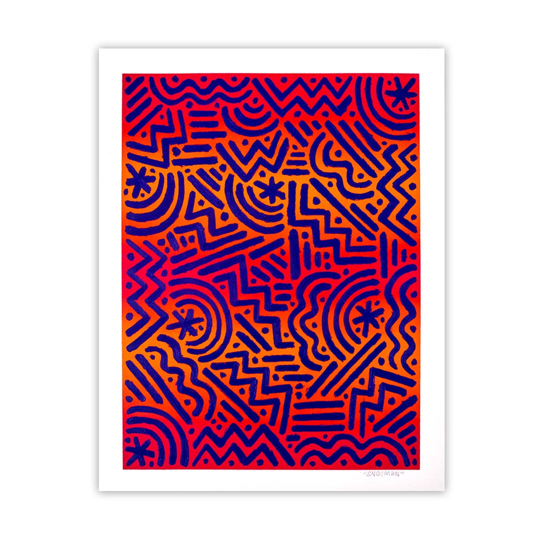 Zig Zag Painting by Snoeman. Aerosol and Paint Stick on Fine Art Paper. 19 x 24 Inches. This artwork comes signed by the artist and with an official letter of provenance from 1XRUN.